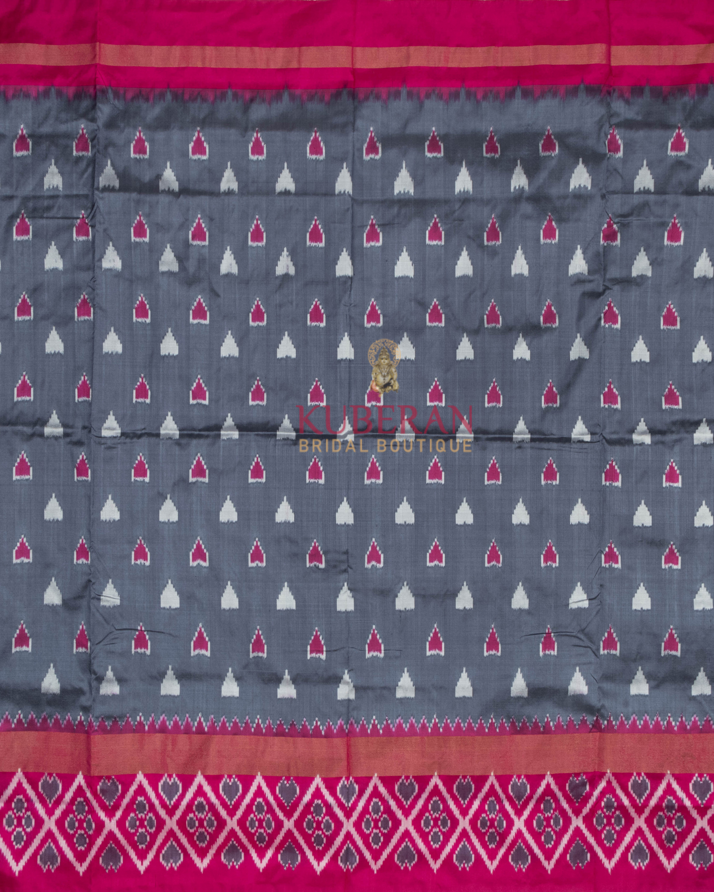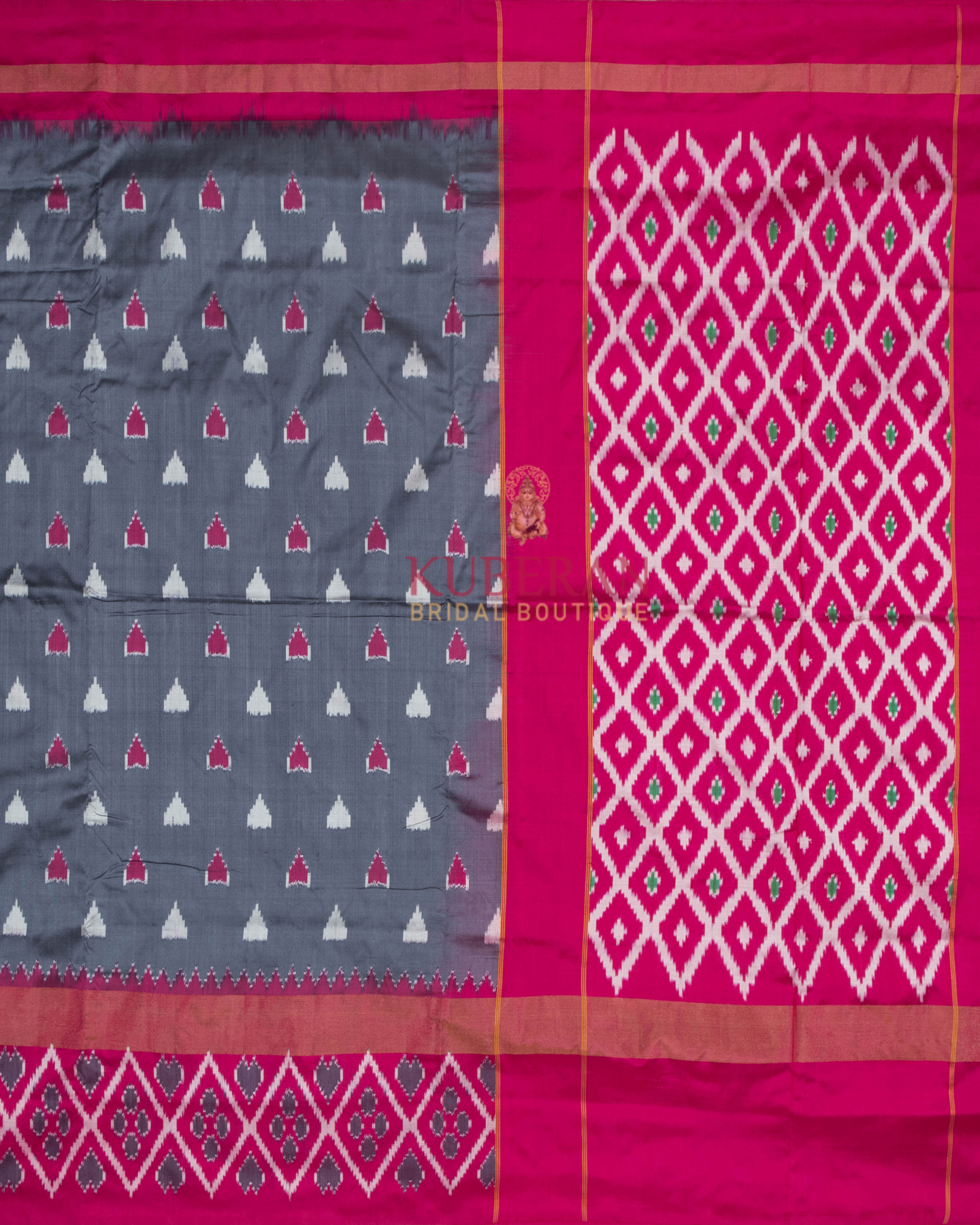 Gorgeous!!! Pochampally-Silk Ikat GREY saree, accentuated with Ikat motifs. It has a temple, Ikat diamond motifs border, and fuchsia-pink pallu enhanced with the Ikat Patola diamond paisley.
