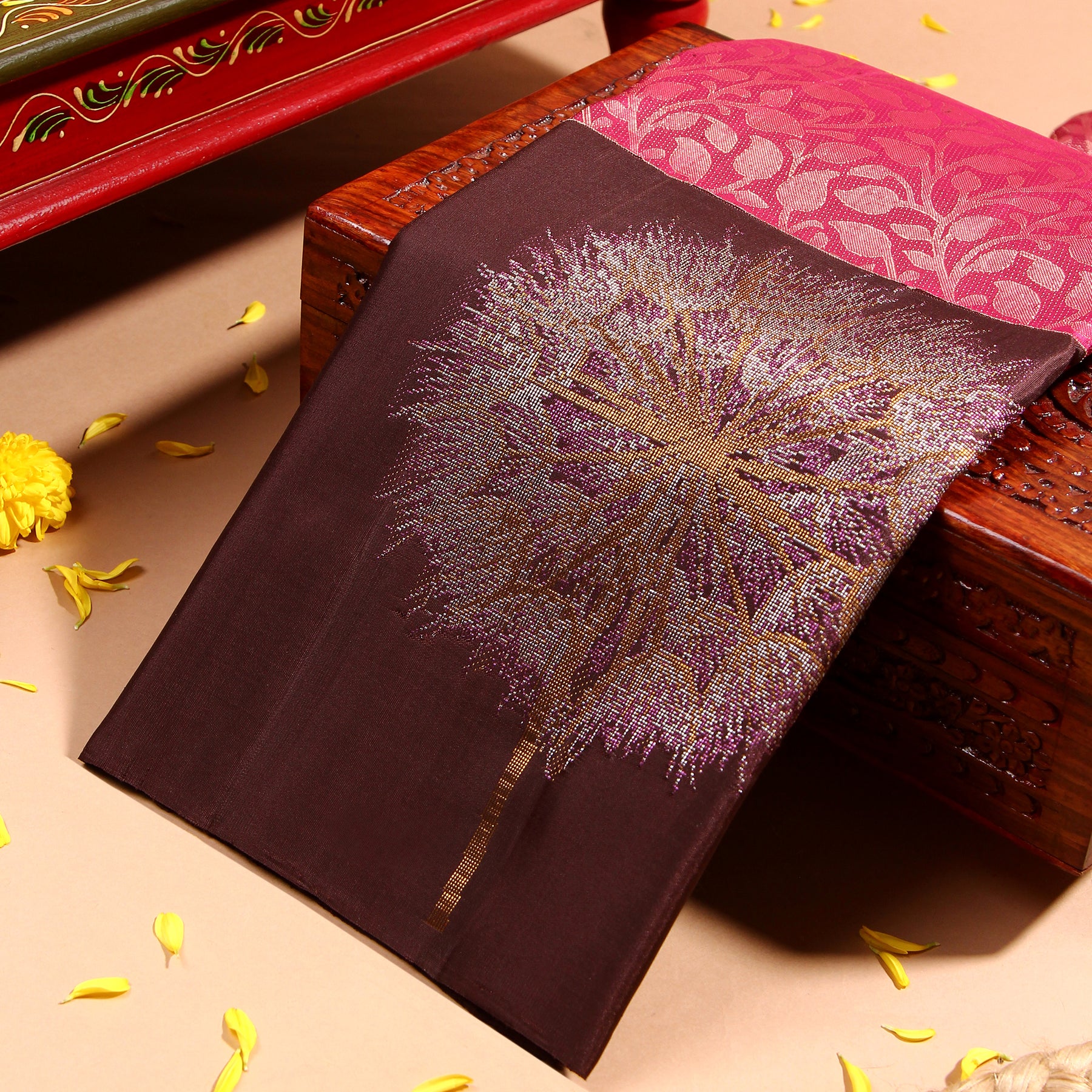 Kuberan Red Wine Kanchivaram Saree