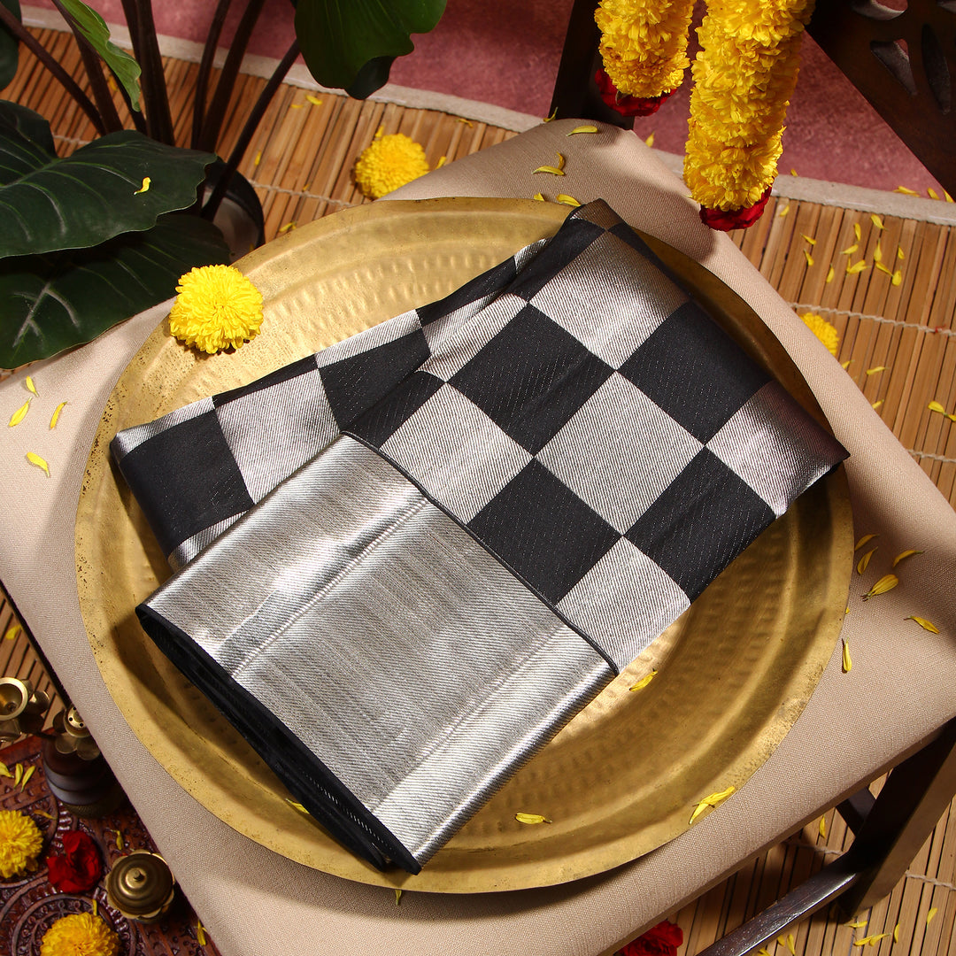 Kuberan Olive Yellow White And Black Checks Border Kanchivaram Saree