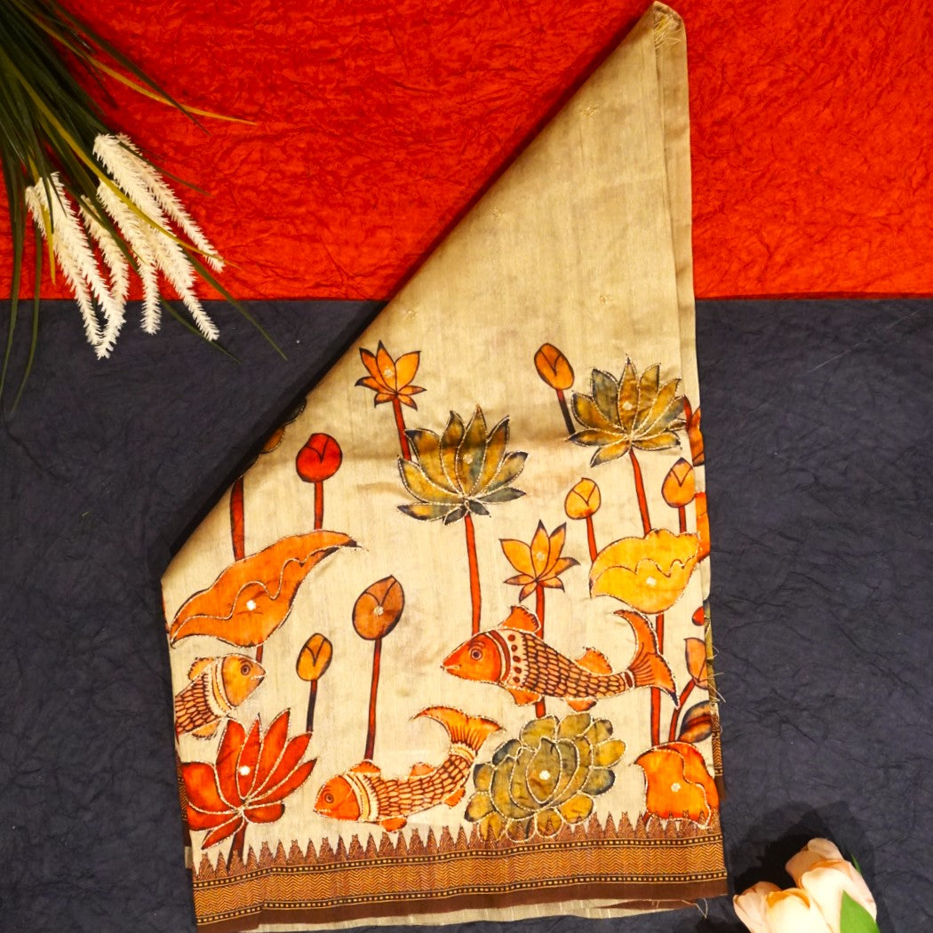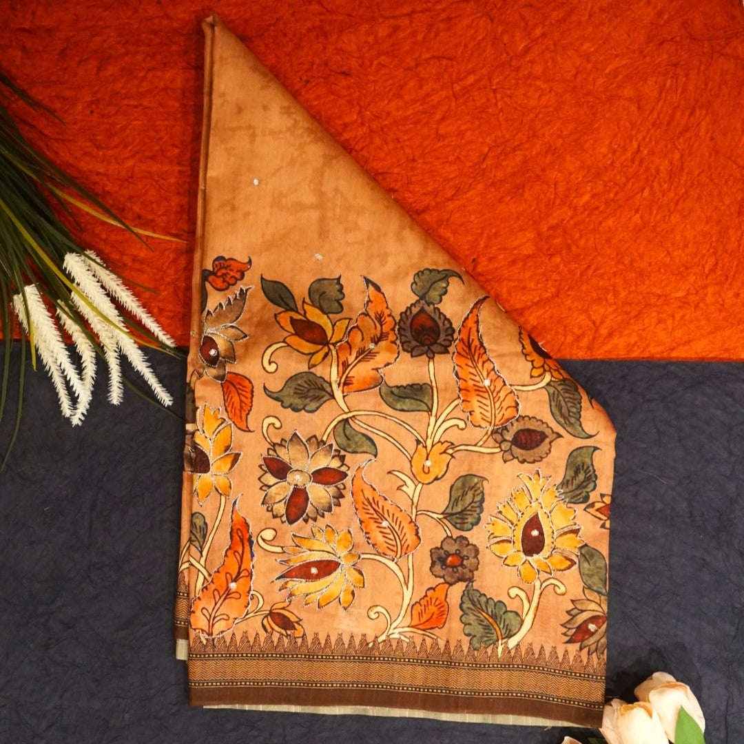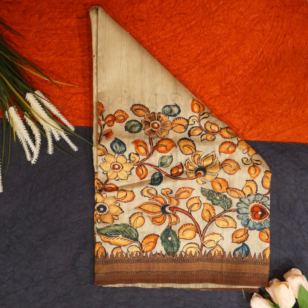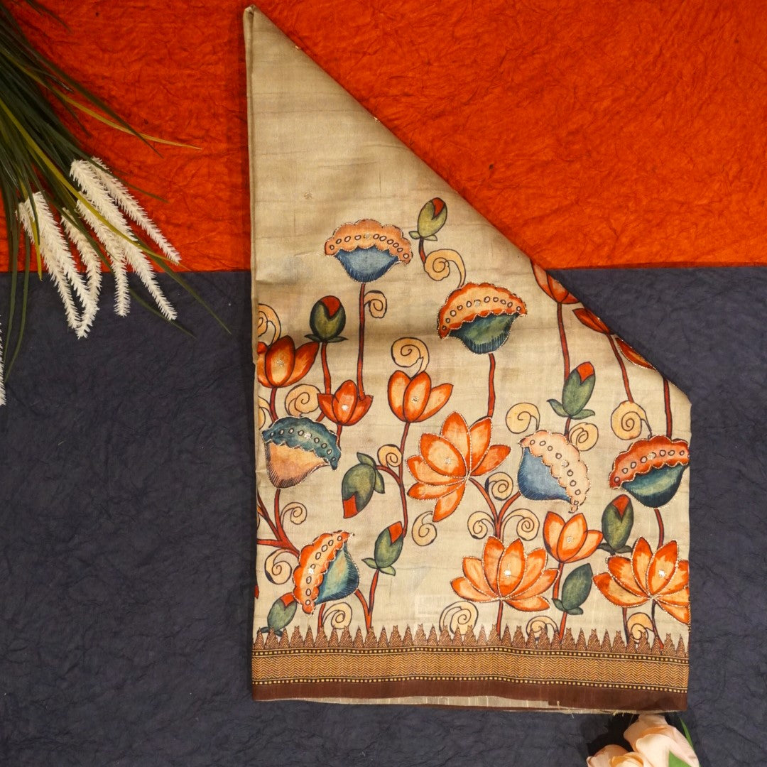 Kuberan Tiffany Blue Kalamkari Tusser Saree