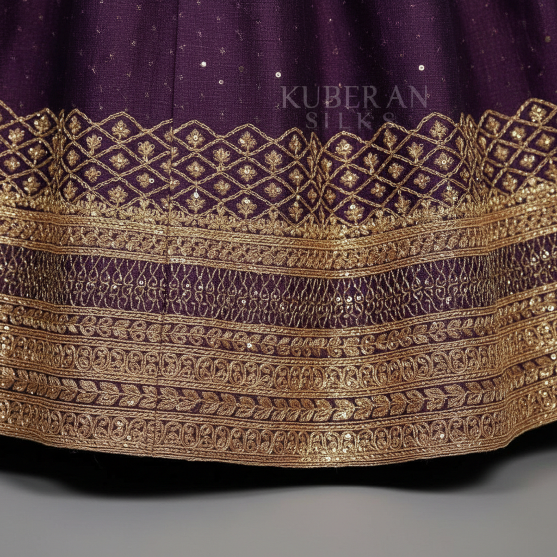 Embrace timeless elegance with this stunning purple unstitched traditional lehenga from Kuberan. Crafted with authentic design elements, this piece celebrates classic Indian craftsmanship and allows you to customize the fit perfectly to your preferences. The rich purple hue brings sophistication to any occasion, whether for weddings, festivals, or special celebrations. Unstitched fabric gives you the freedom to work with your preferred tailor and create a silhouette that feels uniquely yours. Perfect for those who appreciate traditional wear with a personal touch.