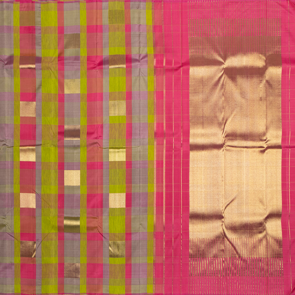 Kuberan Parrot Green With Pink Kanchivaram Silk Saree