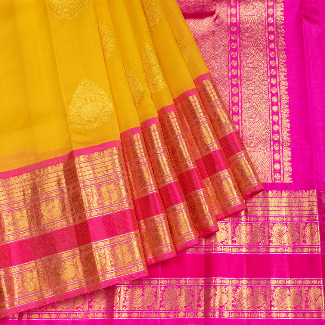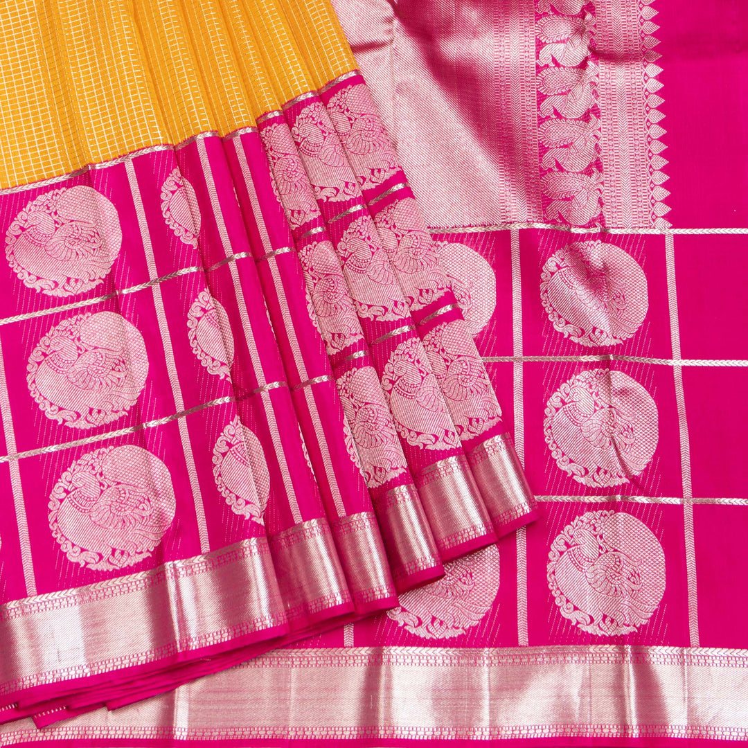 Kuberan Yellow With Pink Organza Kanchivaram Silk Saree
