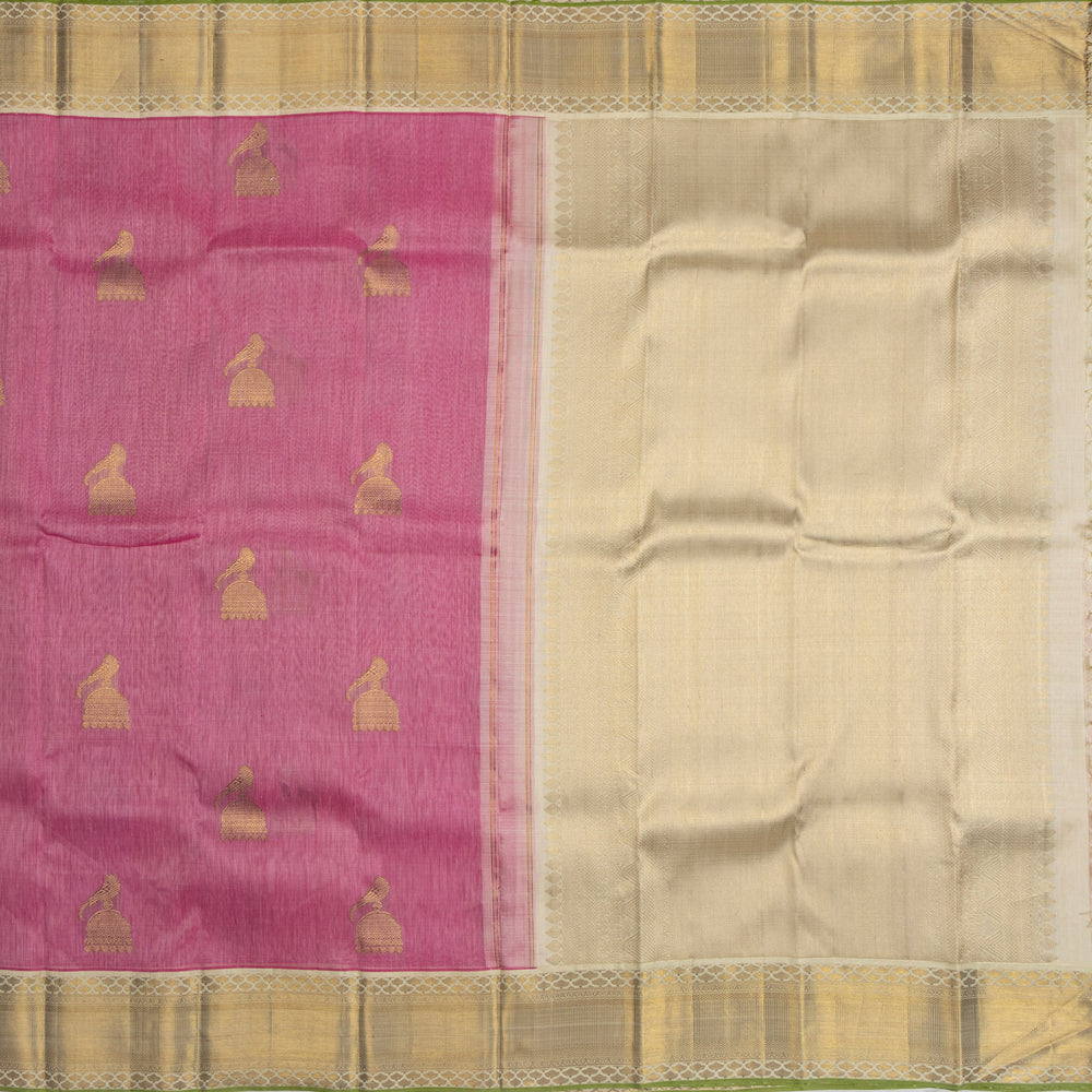 Kuberan Parrot Green With Pink Kanchipuram Linen Silk Saree
