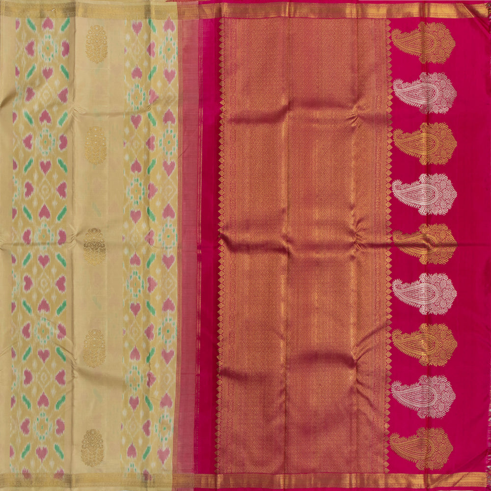 Kuberan Cream With Pink Kanchivaram Ikkat Silk Saree