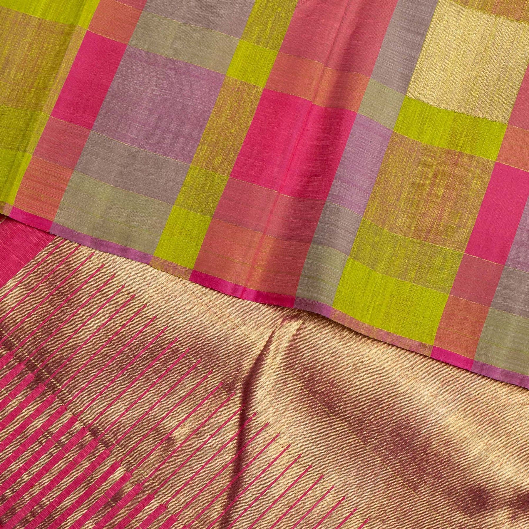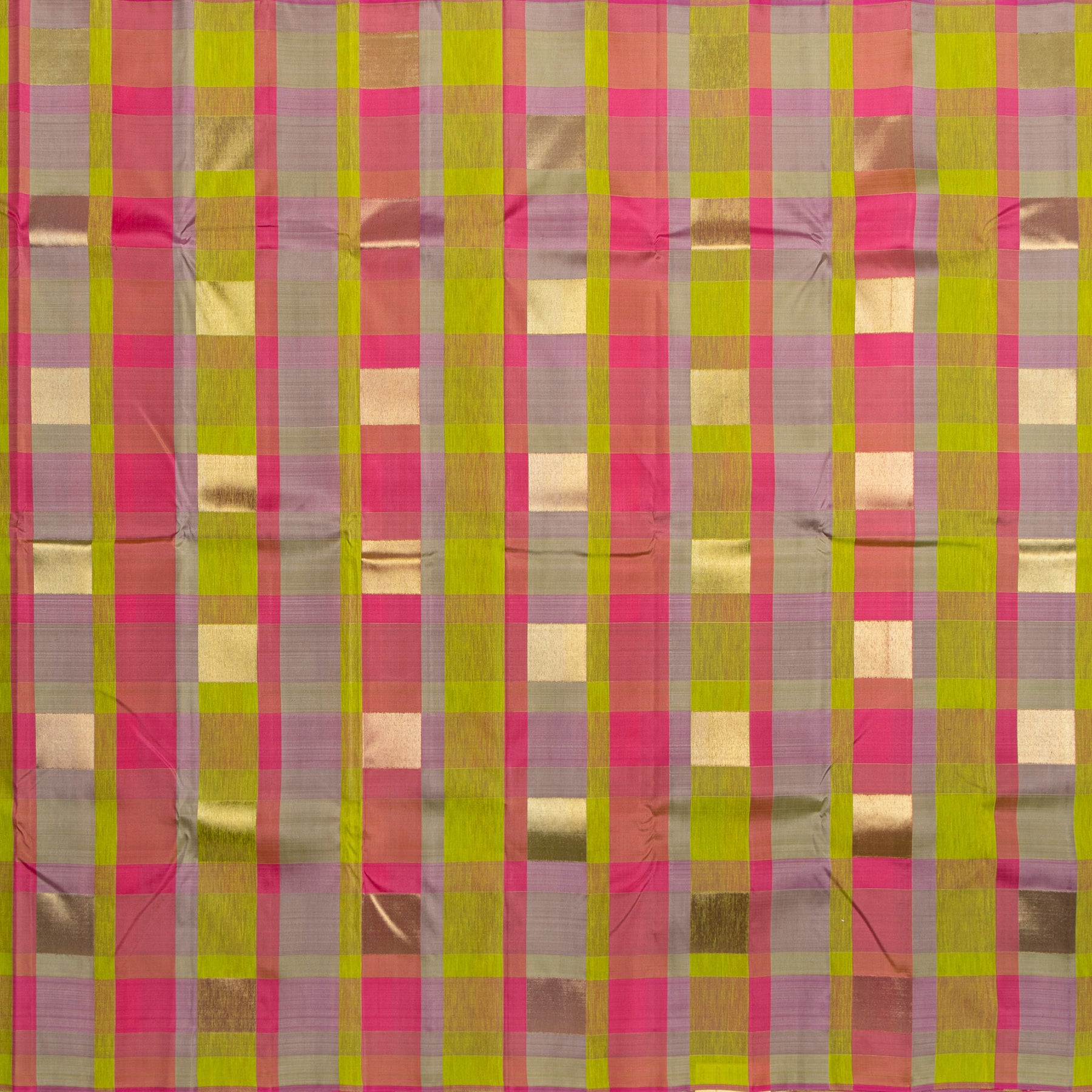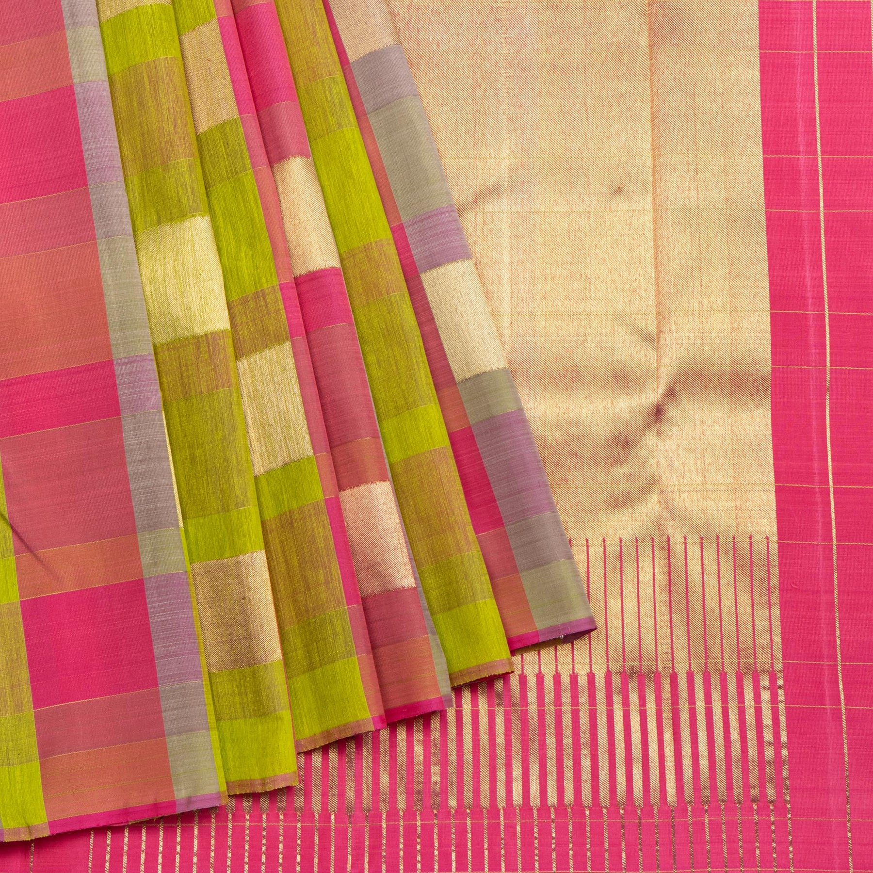 Kuberan Parrot Green With Pink Kanchivaram Silk Saree