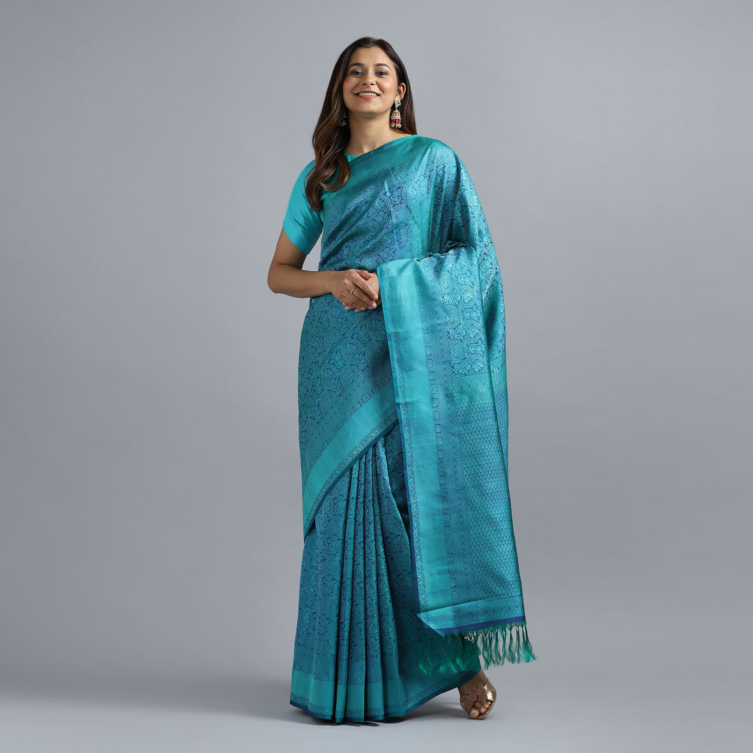 Kuberan Tropical Blue Kalamkari Mysore Silk Saree