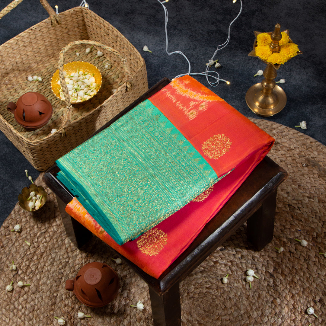 Kuberan Grey Blue With Bright Orange Kanchivaram Saree
