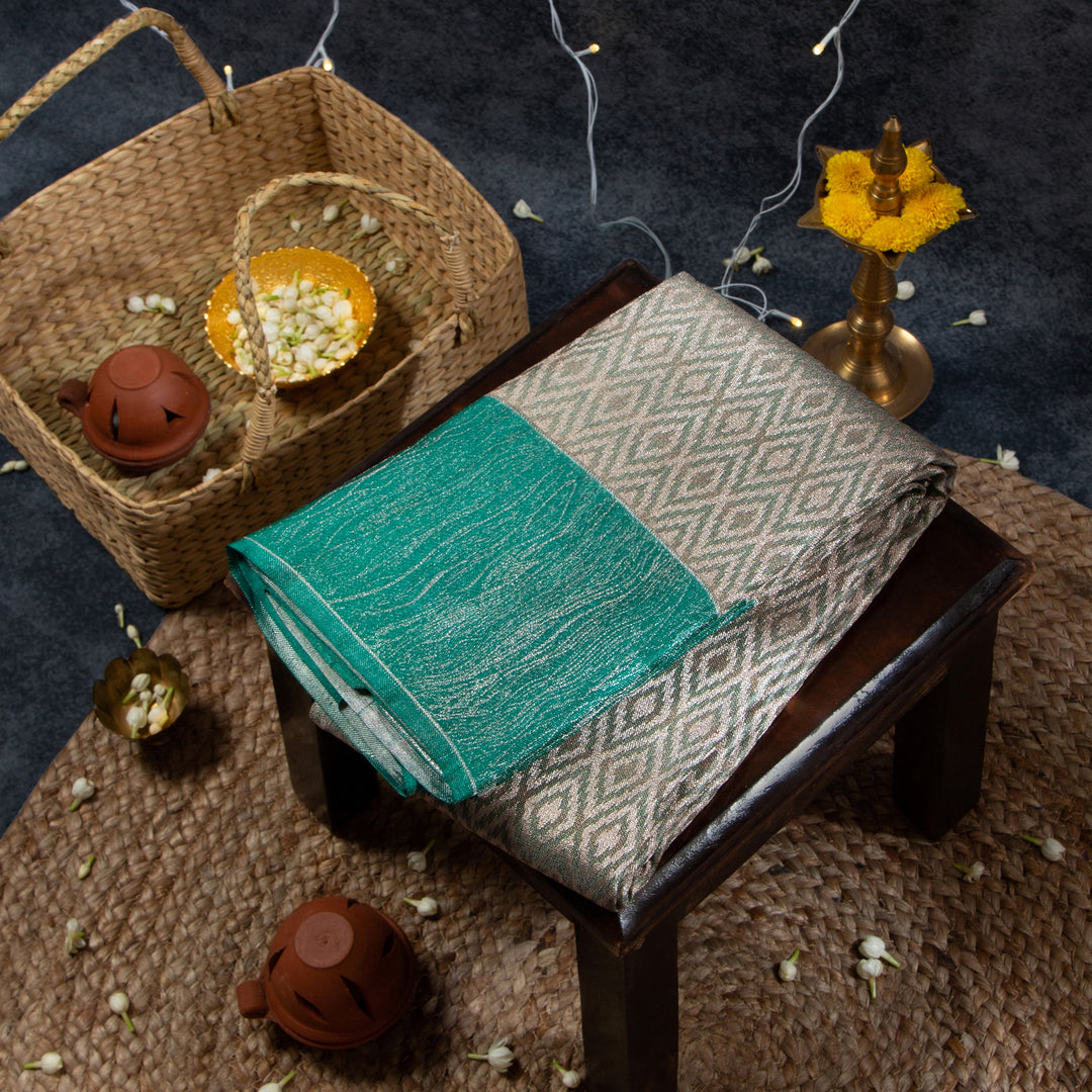Kuberan Silver With Teal Green Kanchivaram Saree