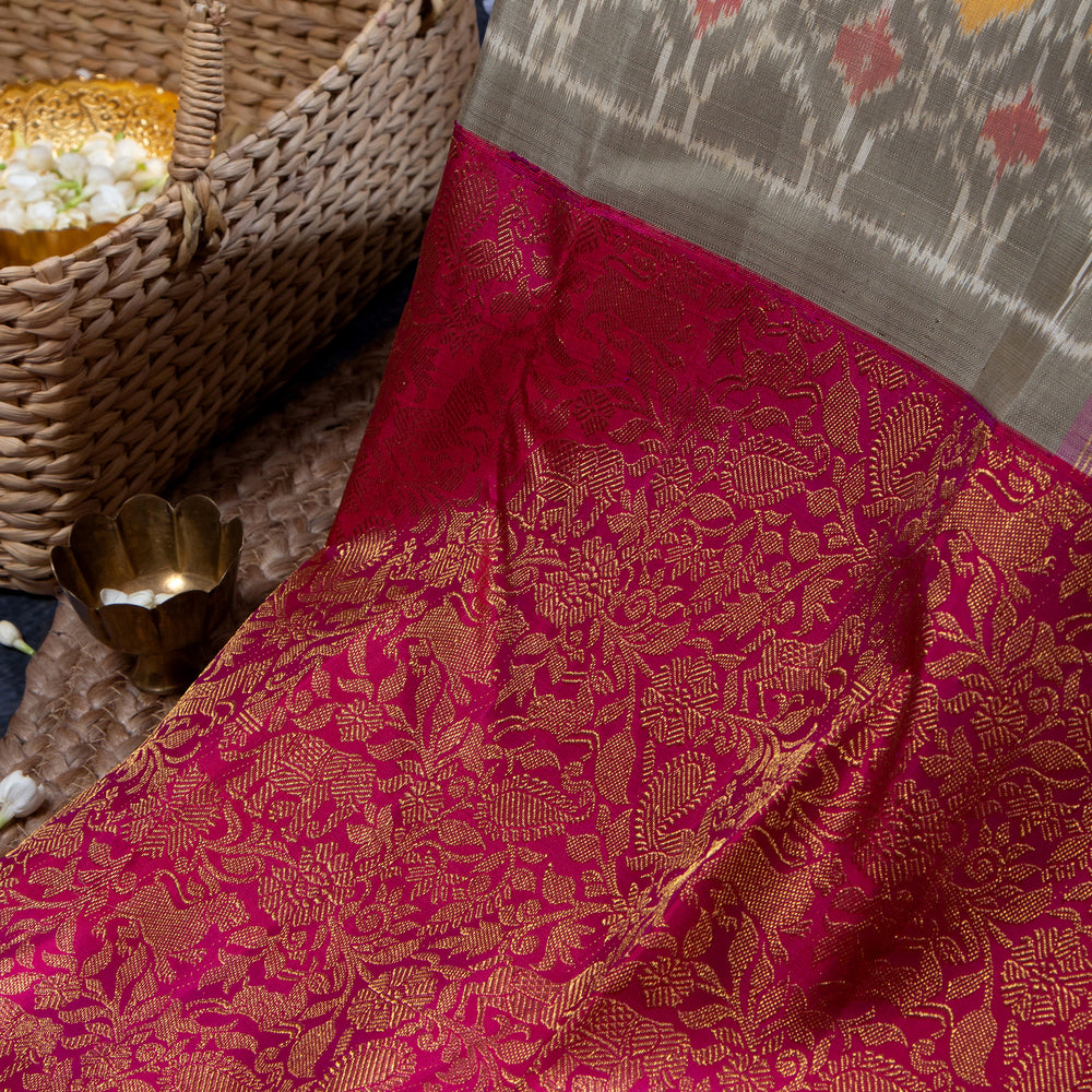 Kuberan Grey Cream Kanchivaram Silk Saree