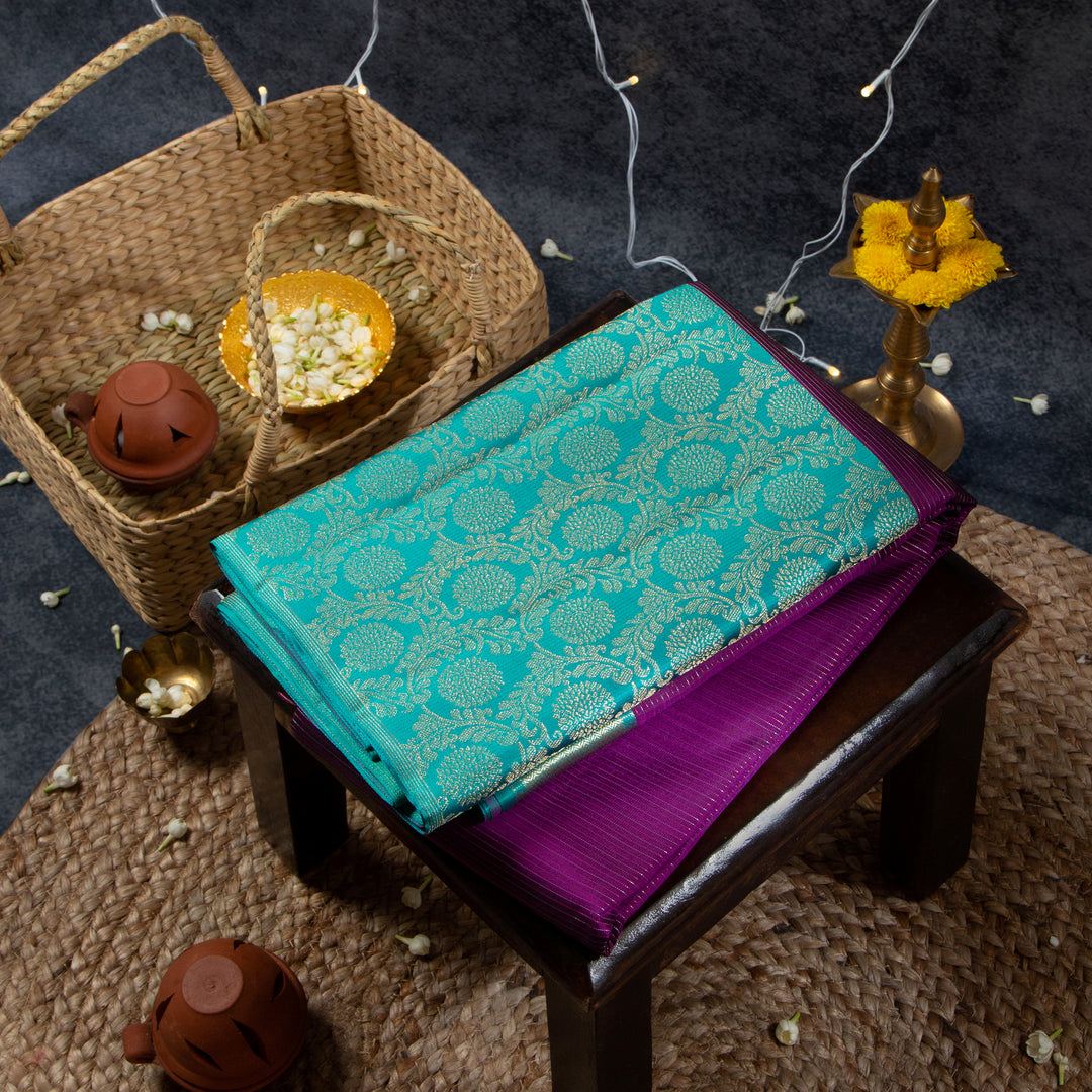 Kuberan Purple With Dark Teal Kanchivaram Saree