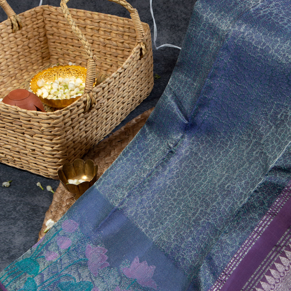 Kuberan Dusky Blue With Plum Purple Kanchivaram Saree