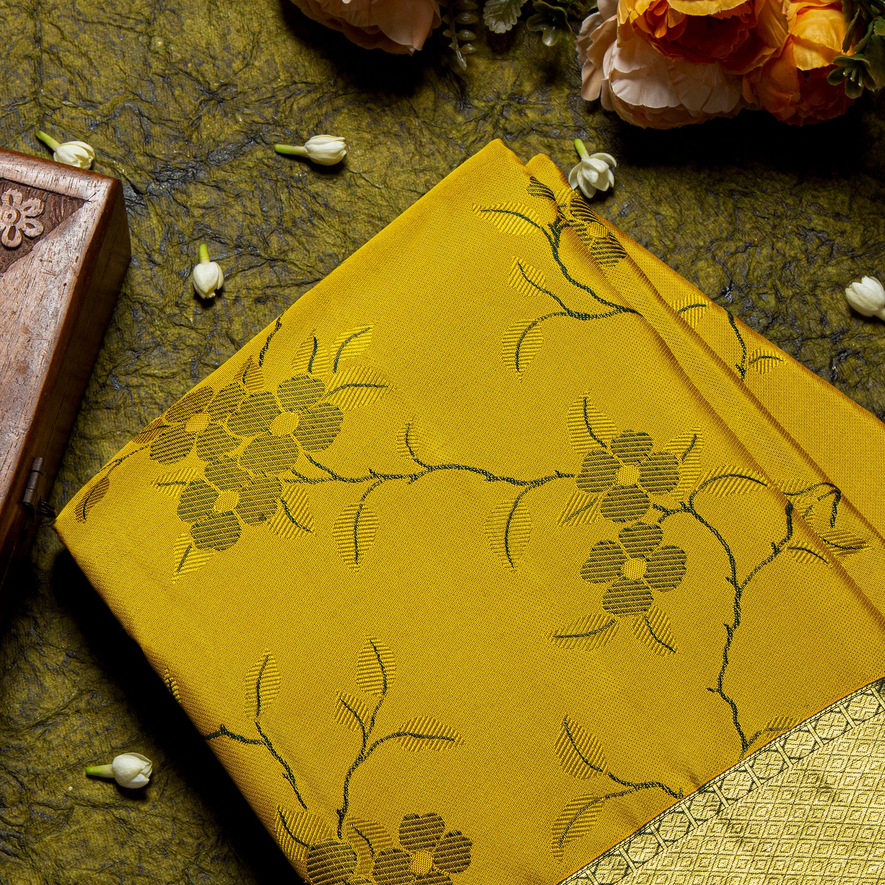 Experience the unparalleled grace of a KUBERAN Mustard Yellow AND BOTTLE GREEN KANCHIVARAM SAREE! Crafted with luxurious fabric, stunning detail, and traditional design, this exquisite saree adds a touch of pure elegance to any look. Experience a timeless style that will turn heads!