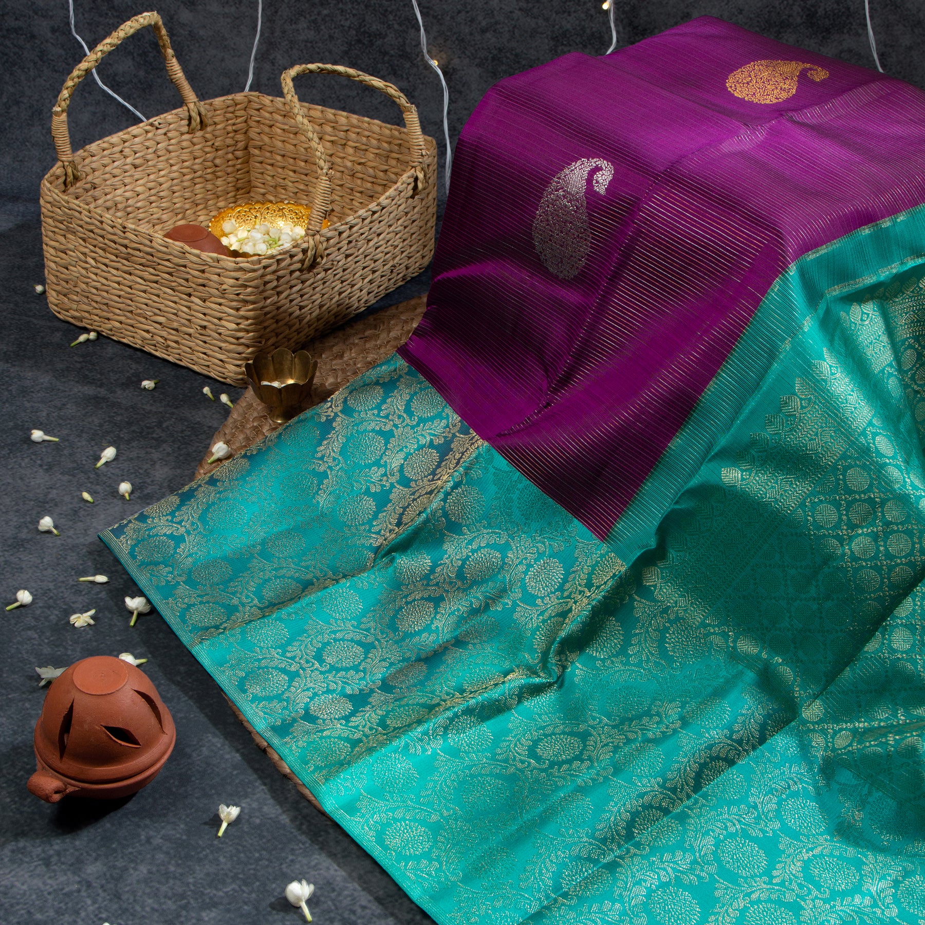 Kuberan Purple With Dark Teal Kanchivaram Saree