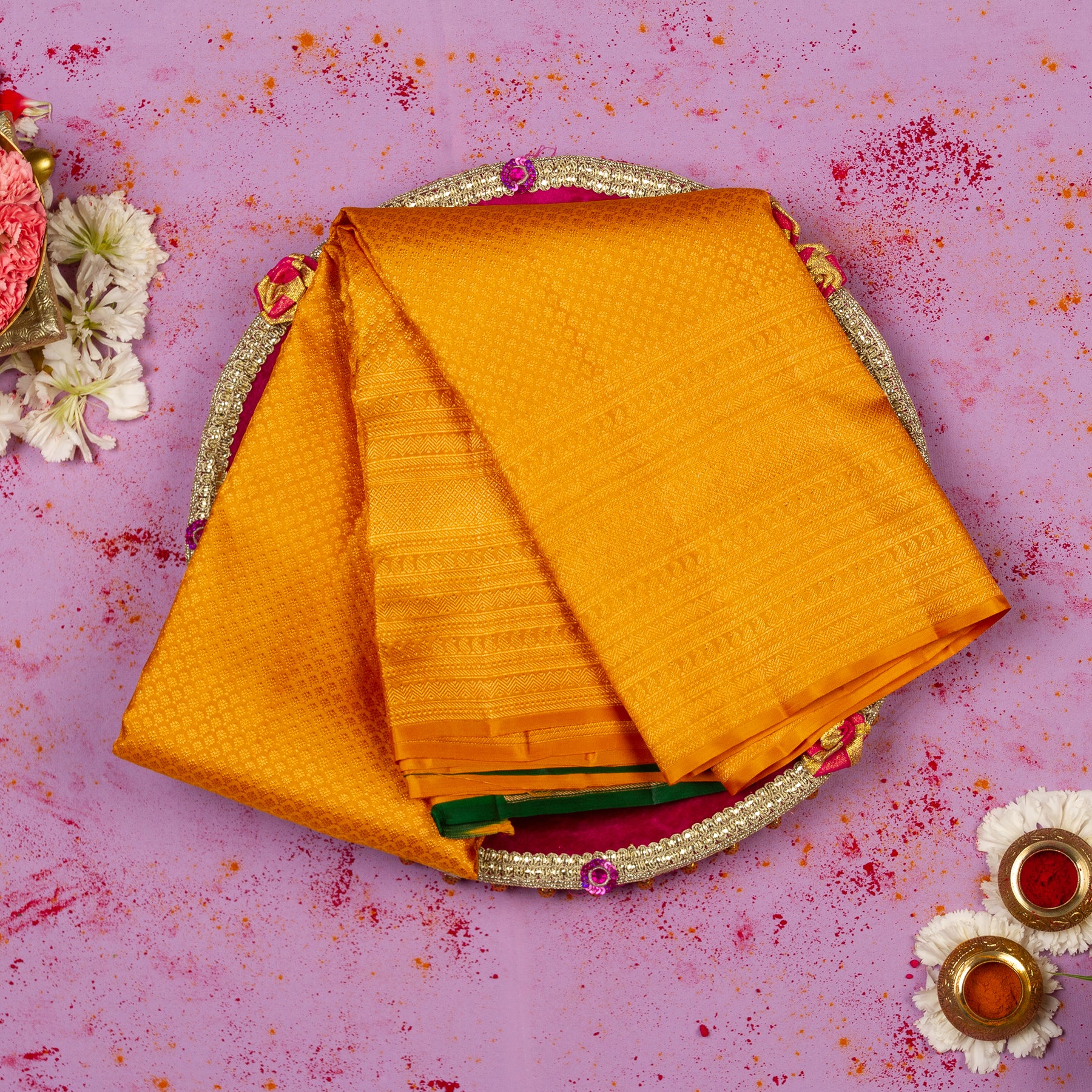 Hey, grab the latest collection of Pure Kanchivaram Silk designer saree a perfect combo of a handloom product only at KUBERAN. This designer Kanchi saree is a handloom woven saree, which gives a perfect look to the wearer.... This saree is complemented with the unstitched blouse and silk mark authenticated.... this saree is a 5.3 Mtrs in length and 1Mtr blouse... must-have in a wardrobe