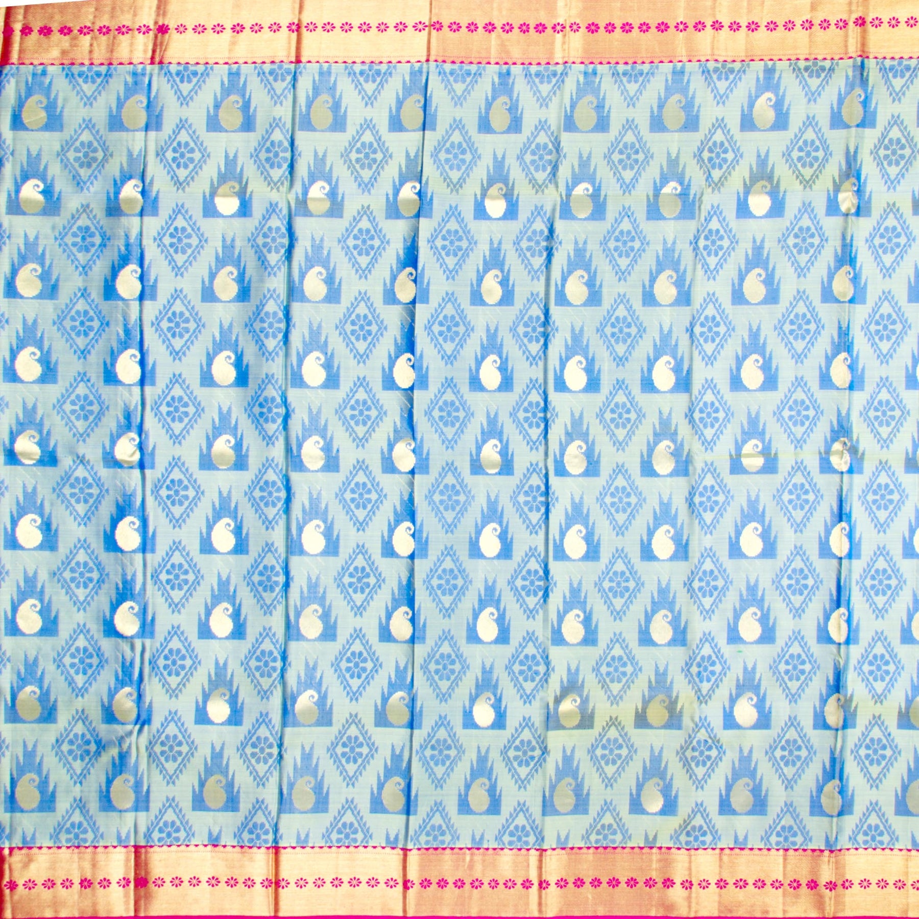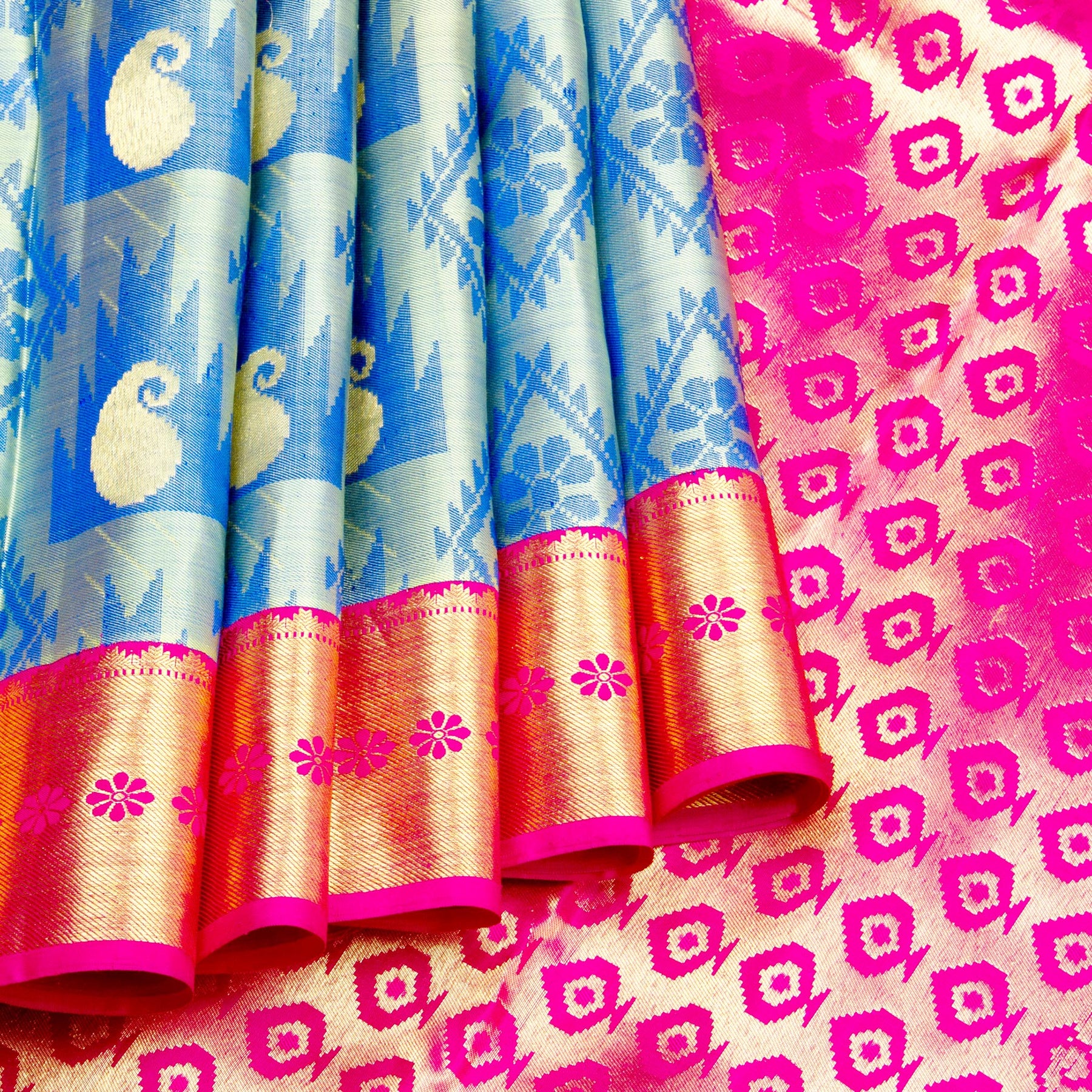 Kuberan Blue Pink Kanchivaram Silk Saree
