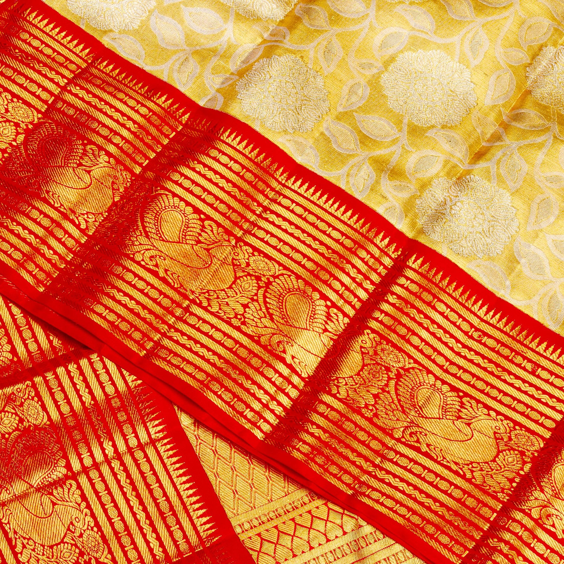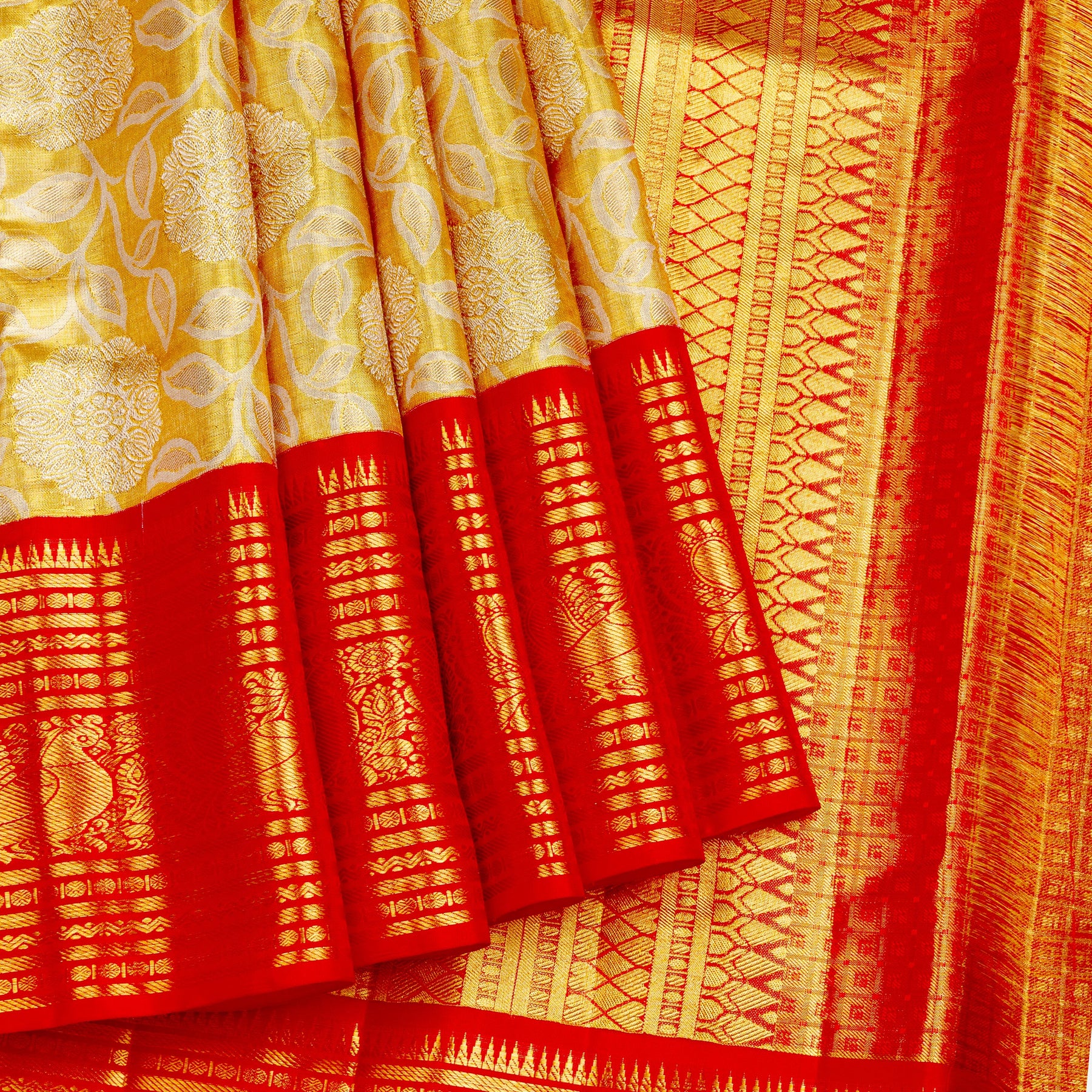 Kuberan Golden Red Pure Kanchivaram Silk Saree