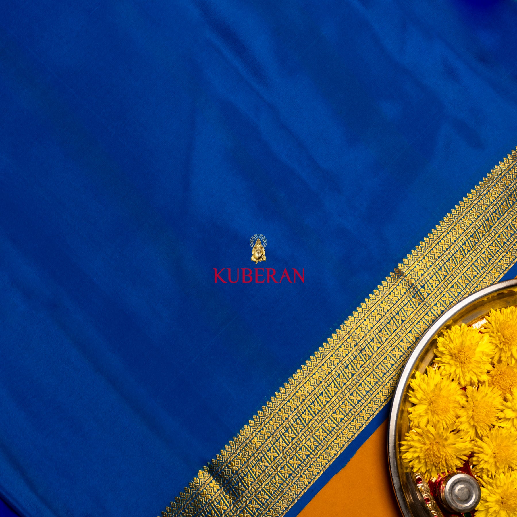 Elevate your style with our Kuberan Blue with Blue & Gold Border Mysore Silk Saree! Made with high-quality materials, this saree features a stunning purple color with a silver border. Perfect for any occasion, it will make you stand out with its elegant and luxurious look. Don't miss out on the potential to turn heads and feel confident and beautiful in our saree. Order now!