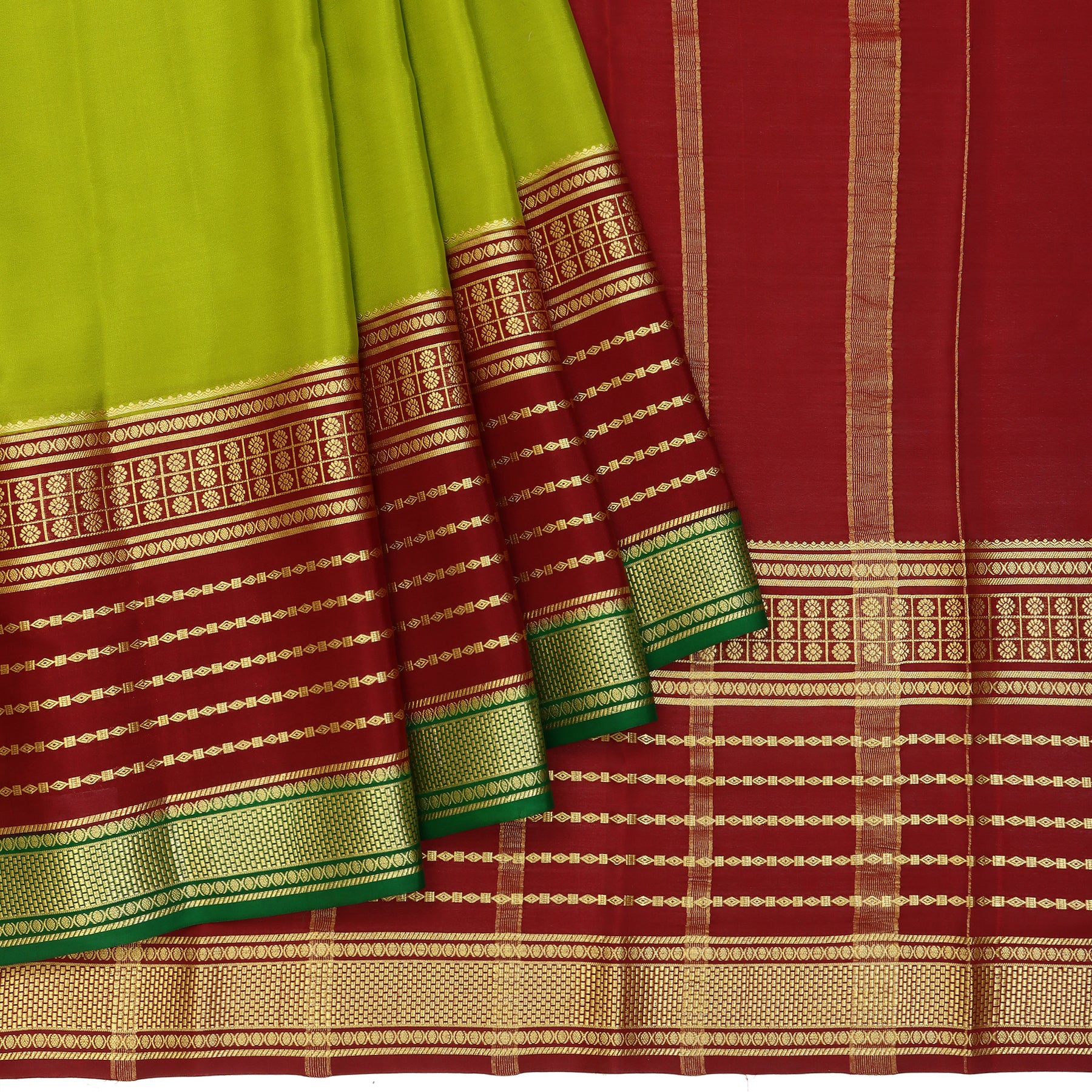 Elevate your wardrobe with our stunning Kuberan green with maroon Mysore Silk Saree! This elegant saree features a beautiful gold zari bentex border, adding a touch of sophistication to any occasion. Made from high-quality Mysore silk, you'll feel luxurious and confident all day long. Look and feel your best with our Kuberan saree!