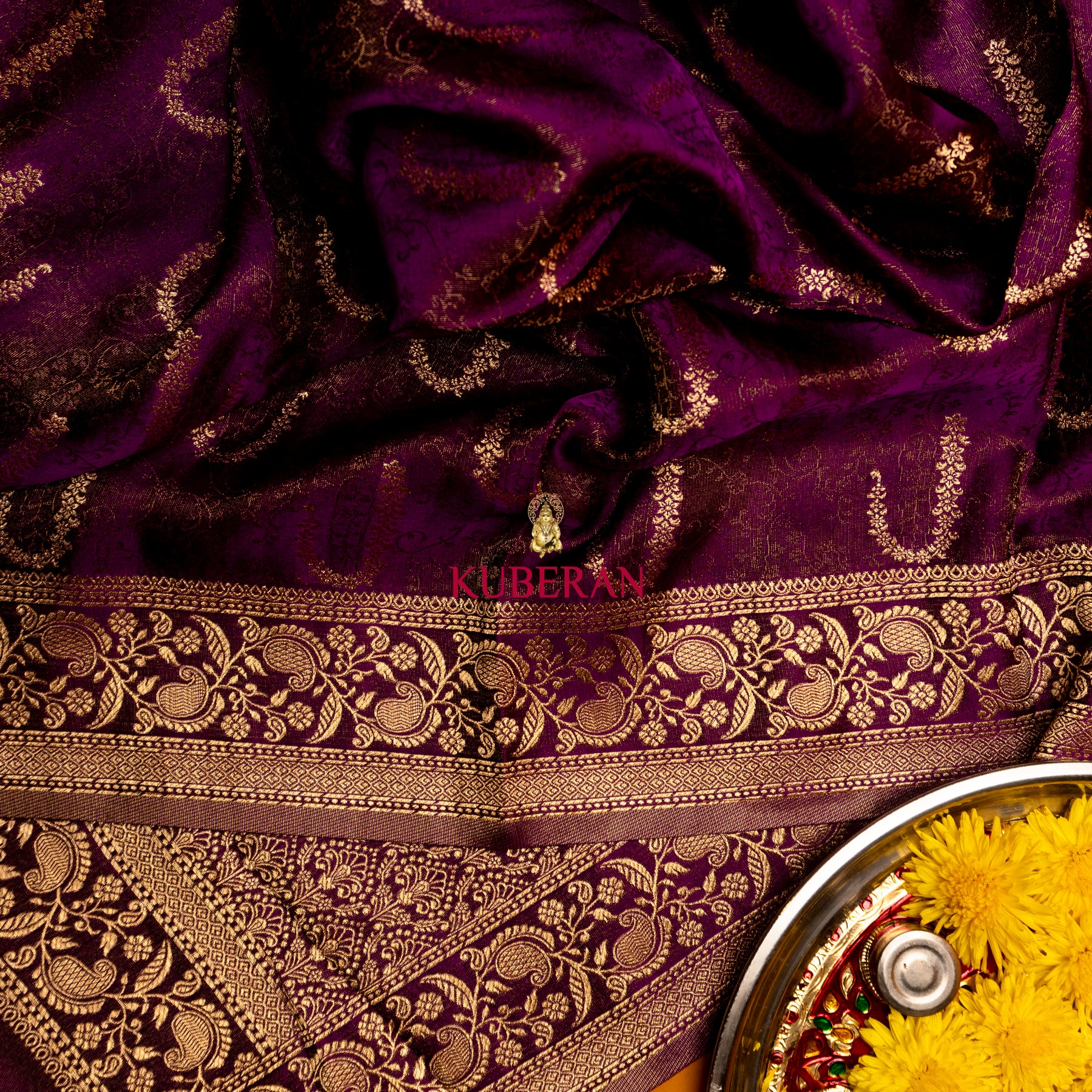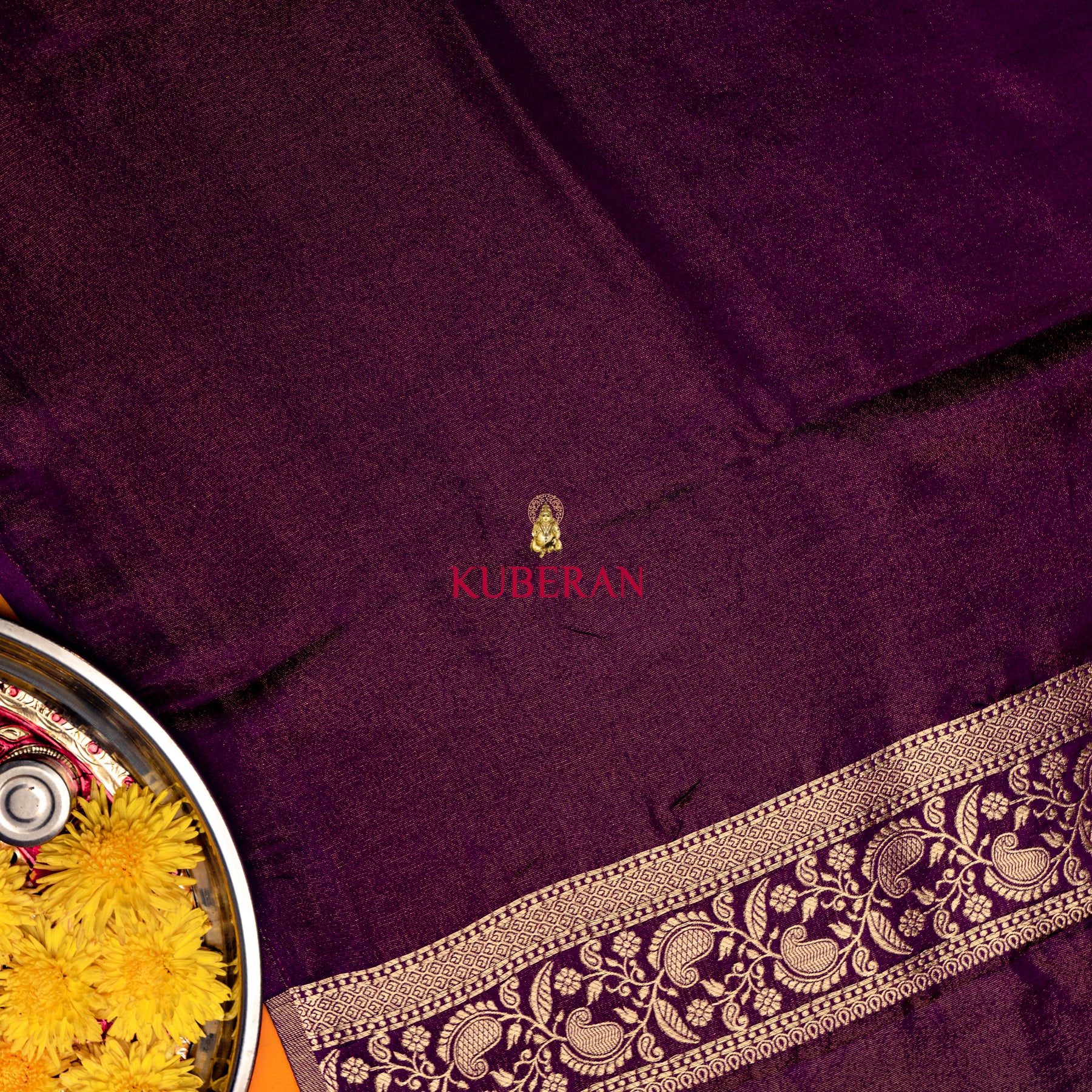 kuberan purple with golden border mysore silk saree