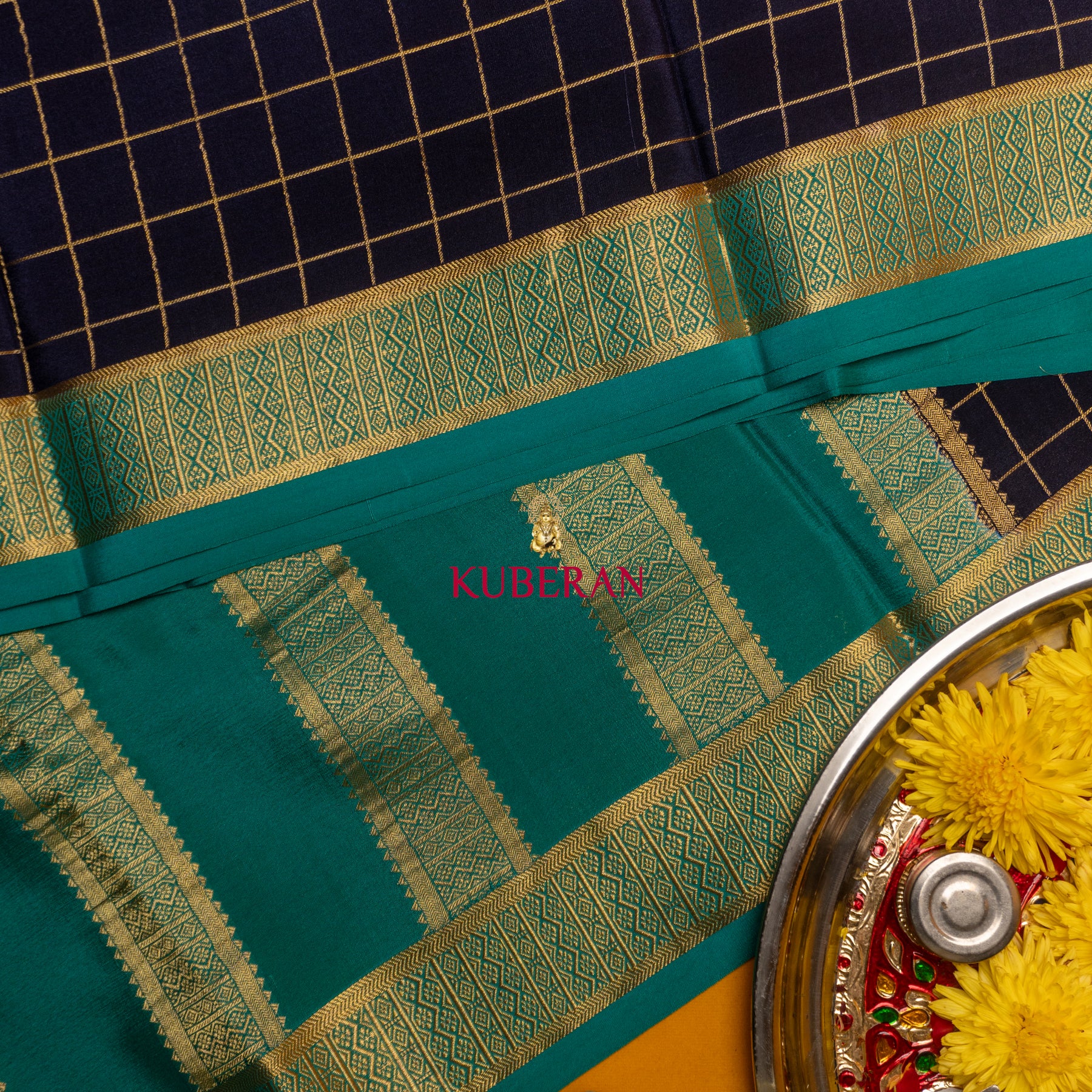 Expertly crafted and designed, the Kuberan Royal Blue silk saree features a stunning blue border made of high-quality Mysore silk. Guaranteed to elevate any occasion, this saree combines traditional elegance with modern sophistication. Make a statement with this luxurious and timeless piece.