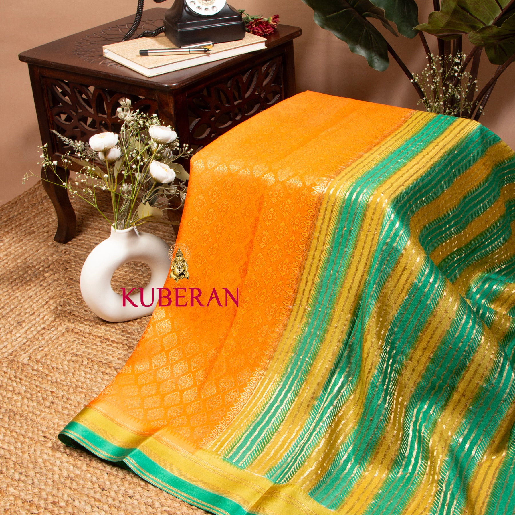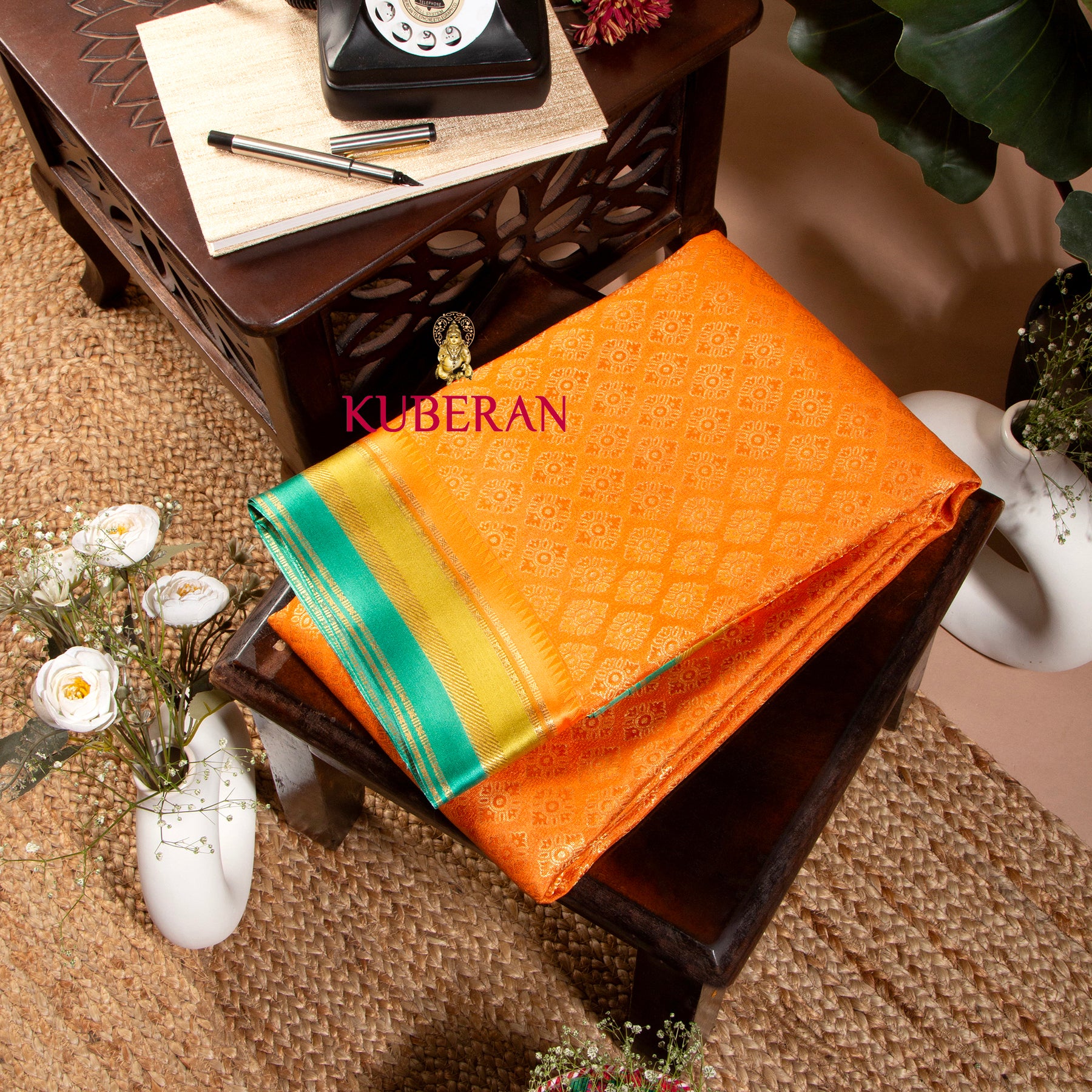 Step into elegance and luxury with our KUBERAN YELLOWISH ORANGE MYSORE SILK SAREE. Made from the finest materials, this saree features a beautiful and vibrant yellowish orange color that will leave you feeling confident and radiant. Elevate your wardrobe with this must-have saree!