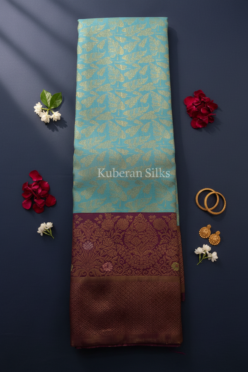 Kuberan Turquoise and Maroon Kanchipuram Silk Saree