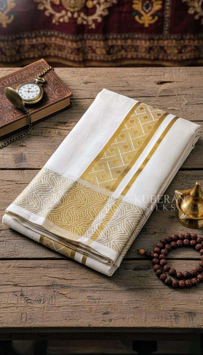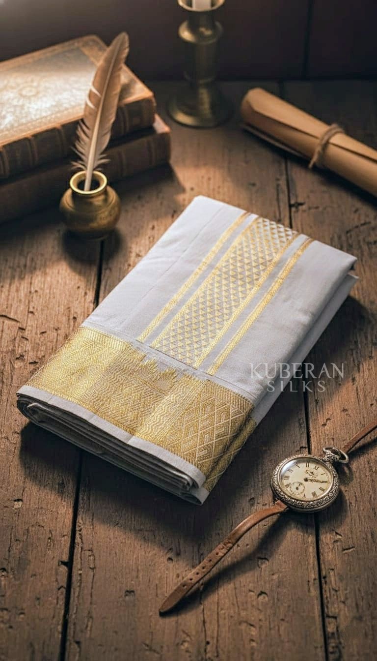 KUBERAN WHITE COLOUR WITH GLOD BORDER PURE SILK DHOTI