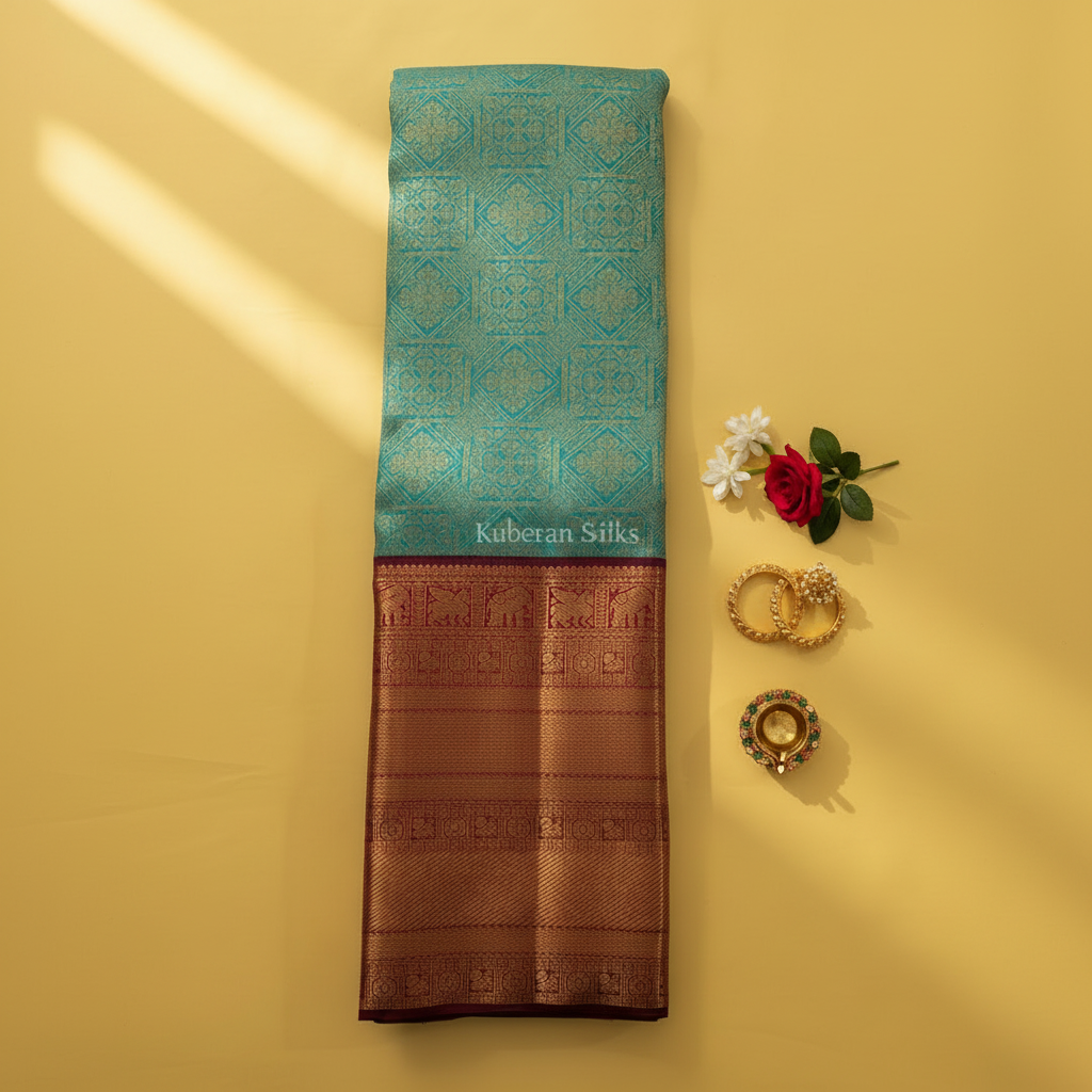 Kuberan Turquoise Kanchipuram Silk Saree