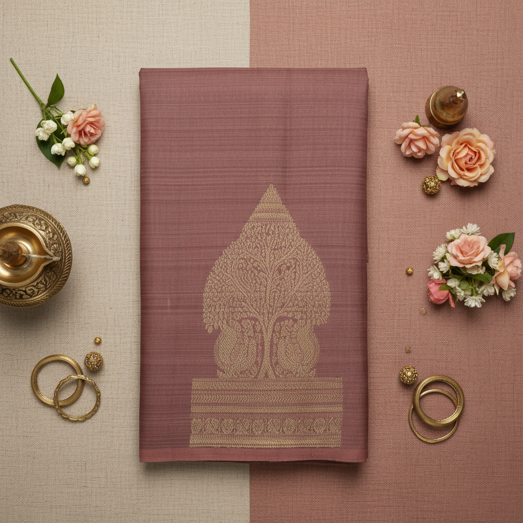 Kuberan Mauve Kanchipuram Silk Saree with Golden Tree Motif