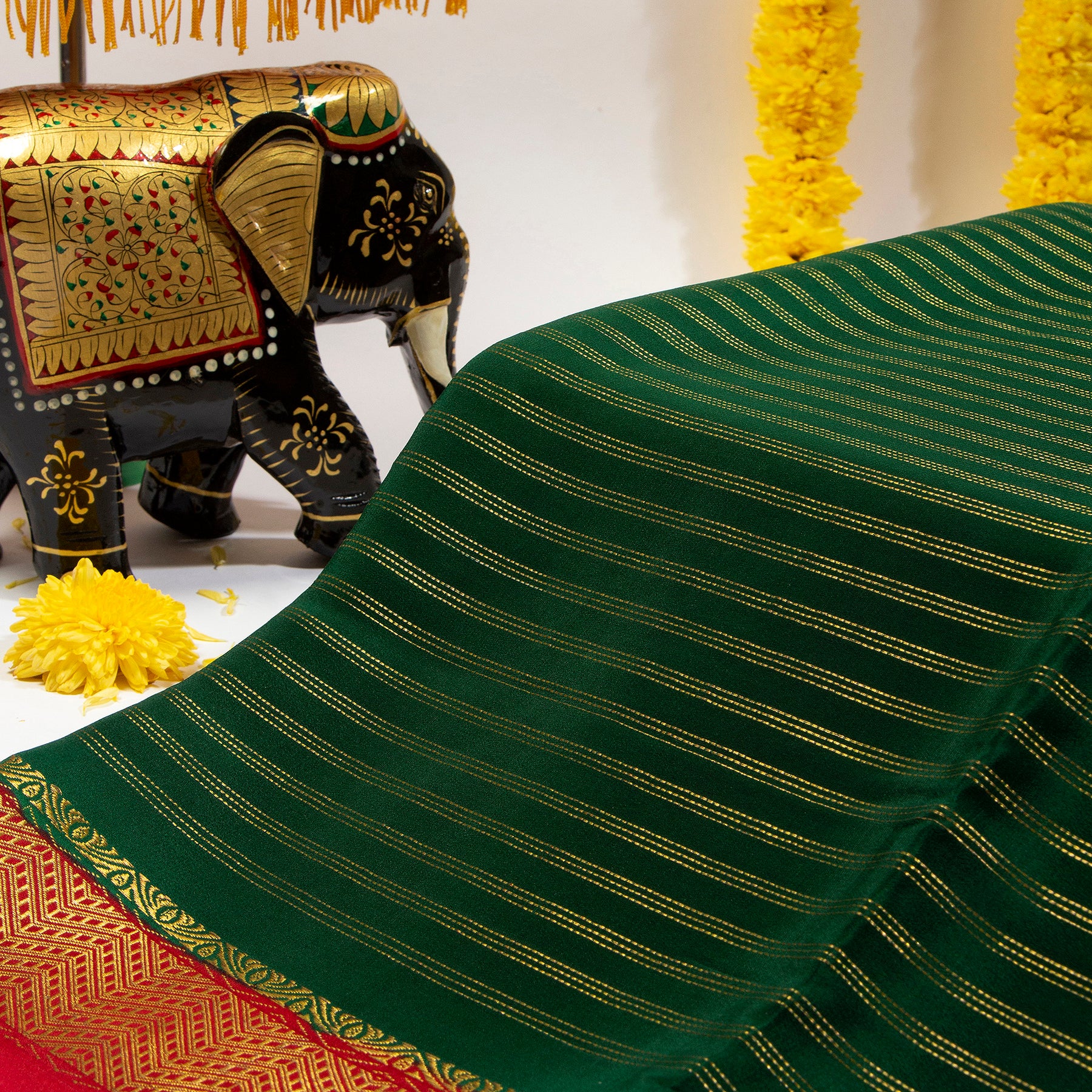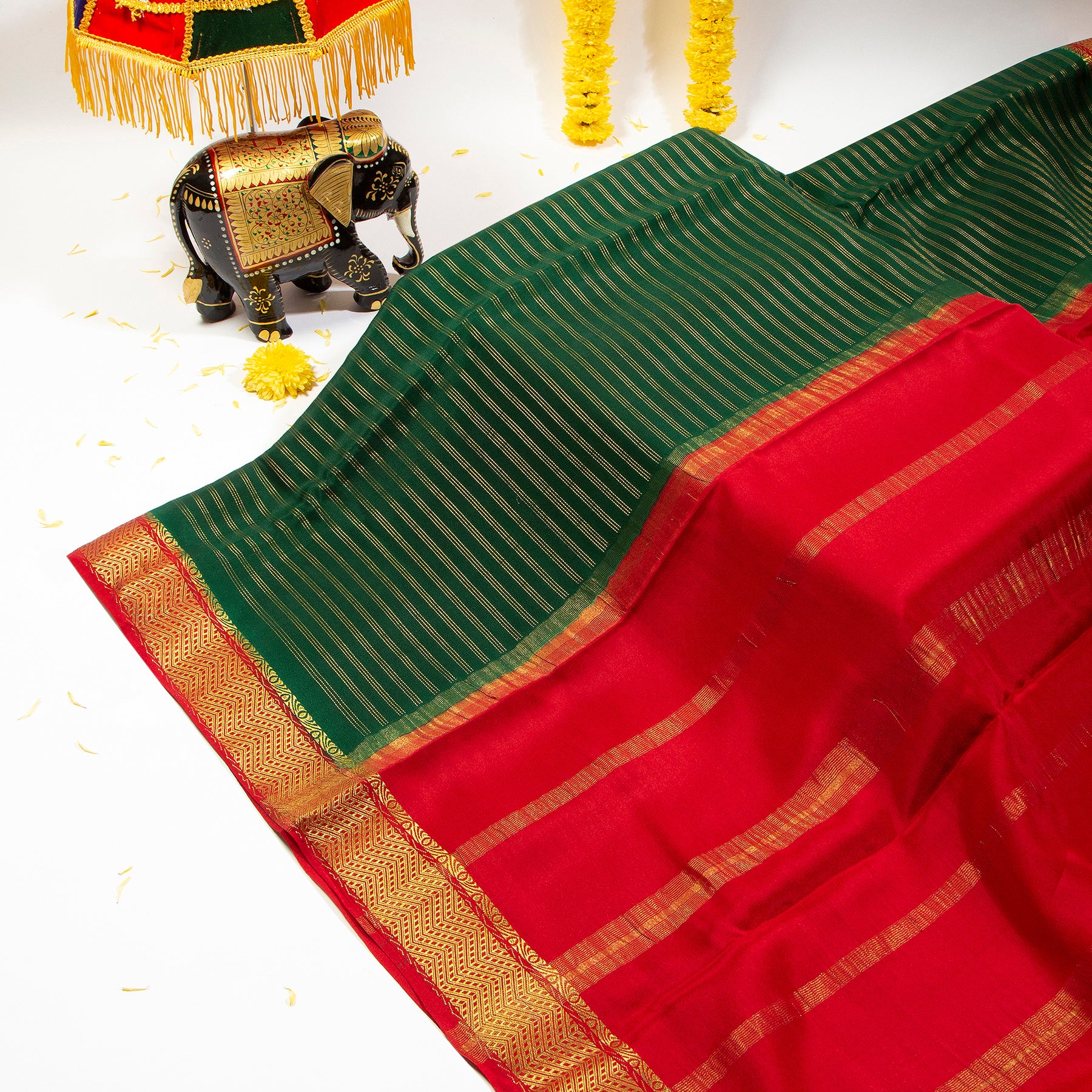Kuberan Bottle Green With Cherry Red Mysore Silk Saree