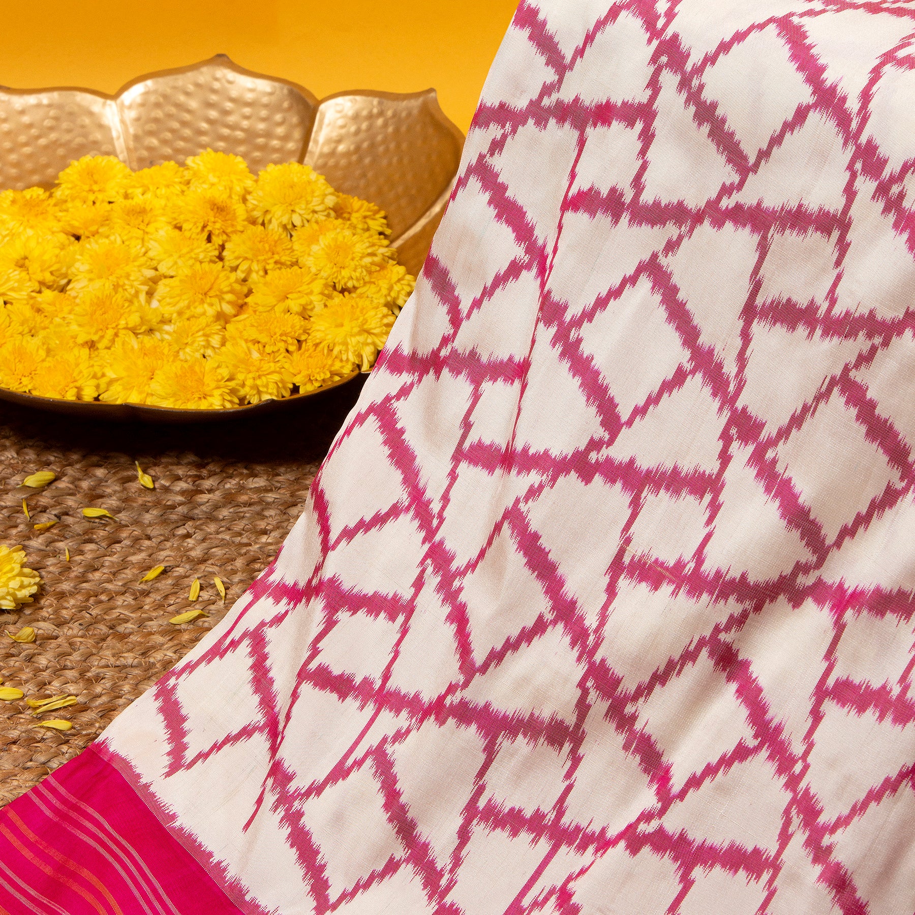 Kuberan Pastel Grey With Dark Hot Pink Pochampally Silk Saree