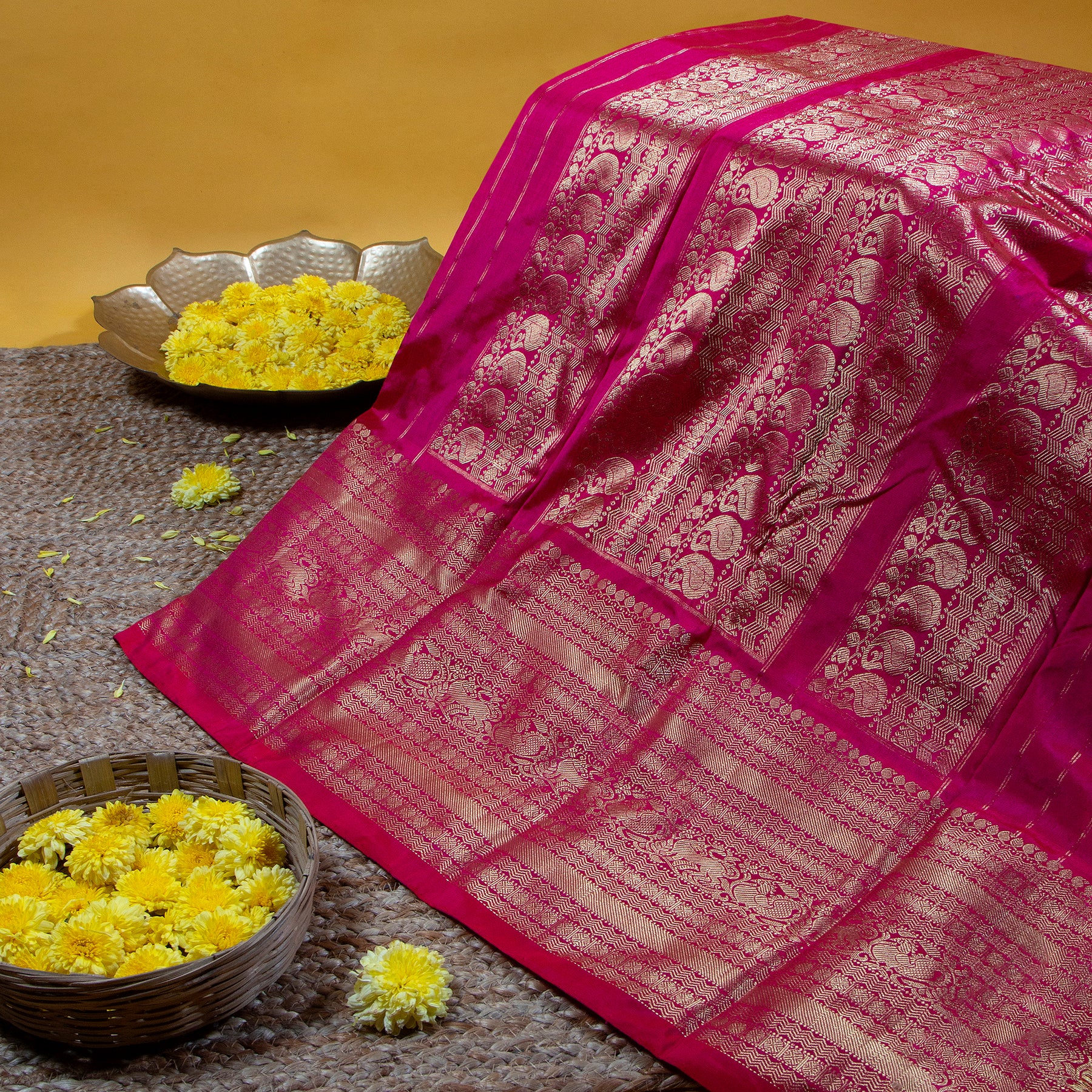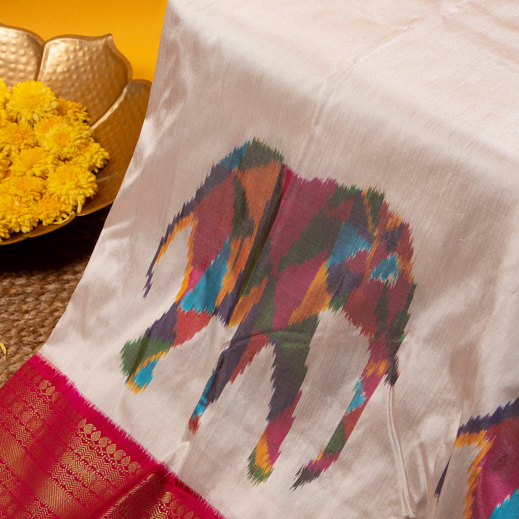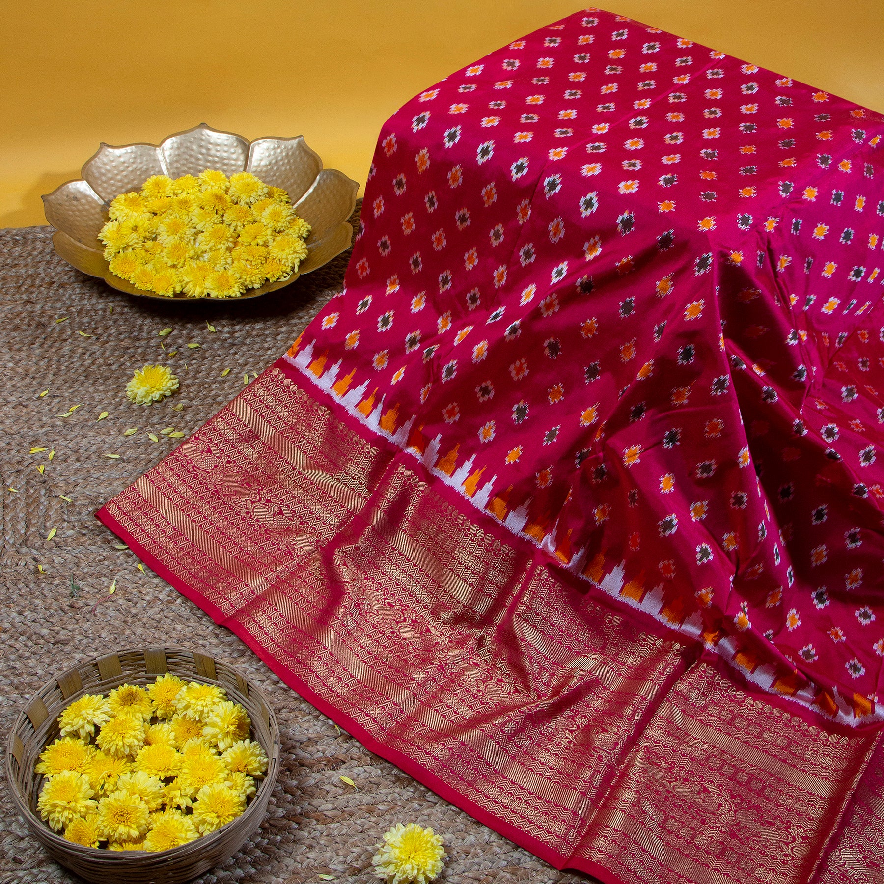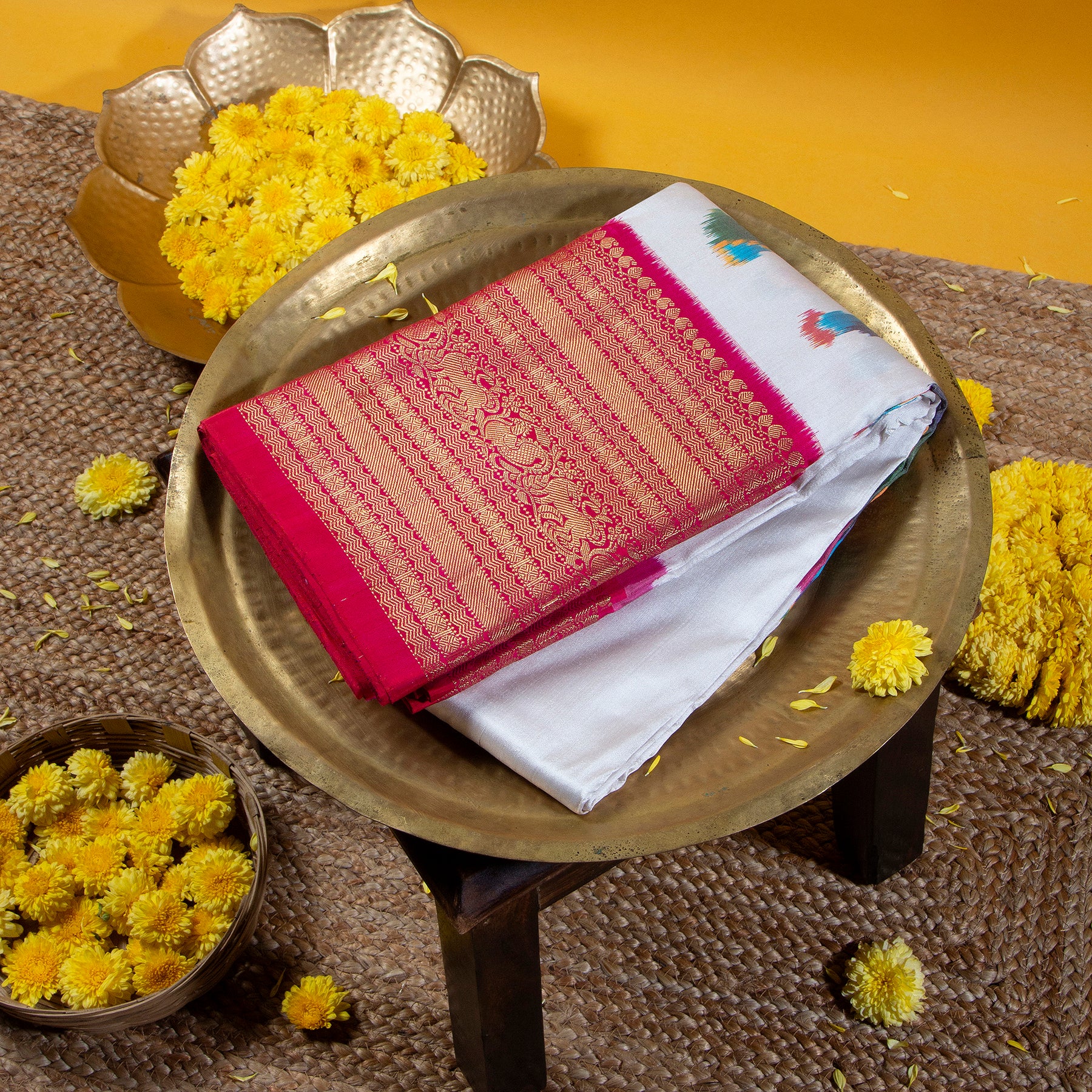 Kuberan Pastel Grey With Rose Red Pochampally Silk Saree