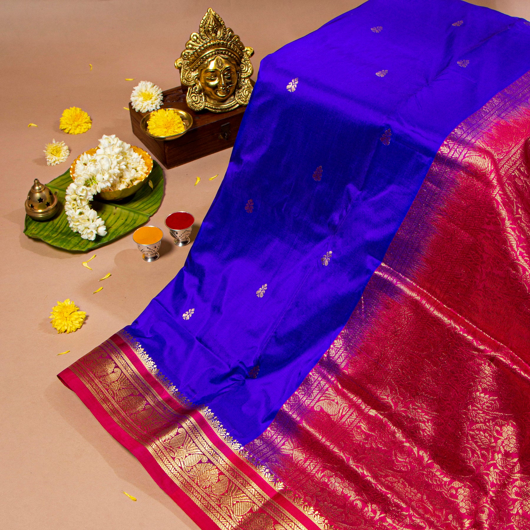 Kuberan Violet Blue With Pink 9 Yards Silk Saree