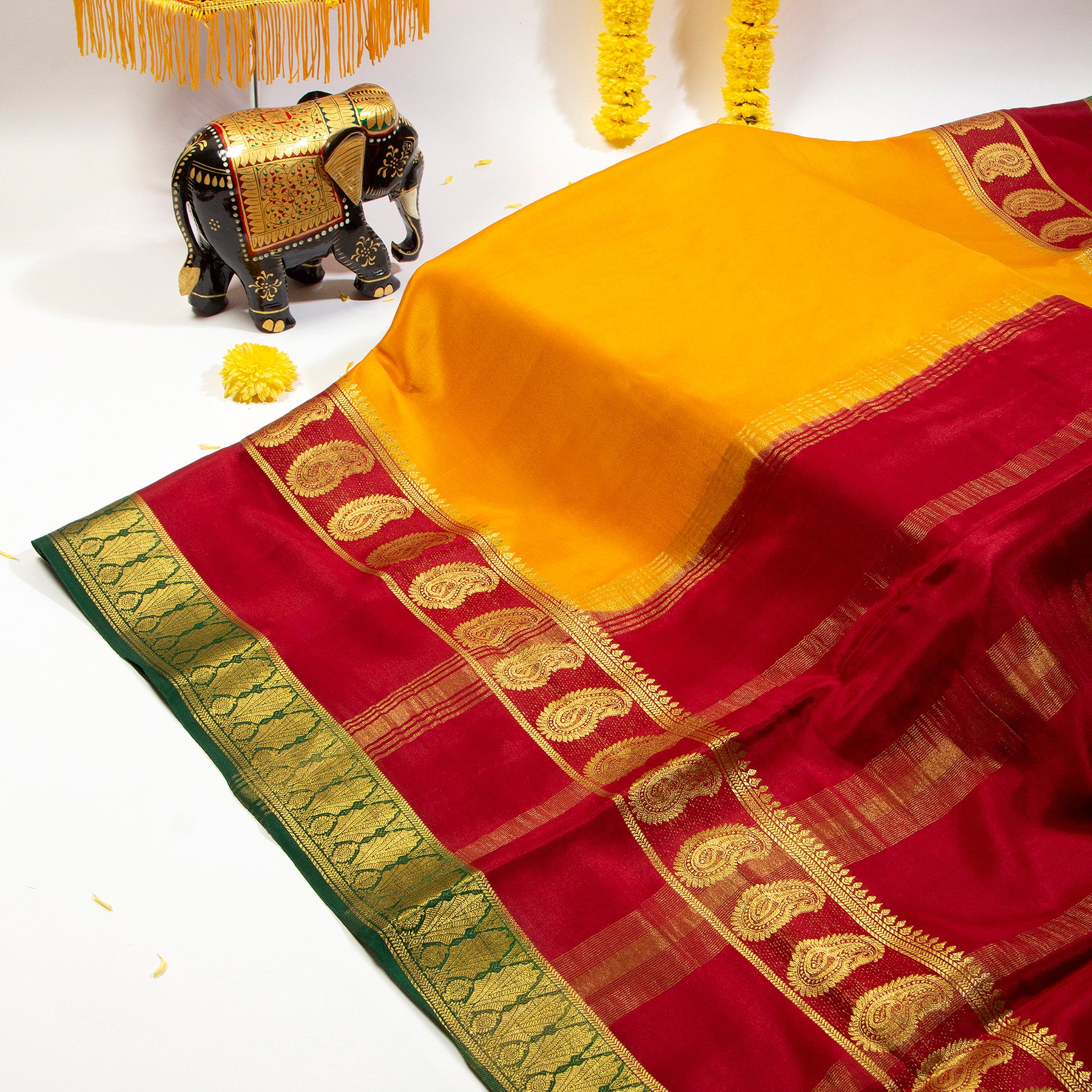 Kuberan Yellowish Orange With Dark Red Mysore Silk Saree