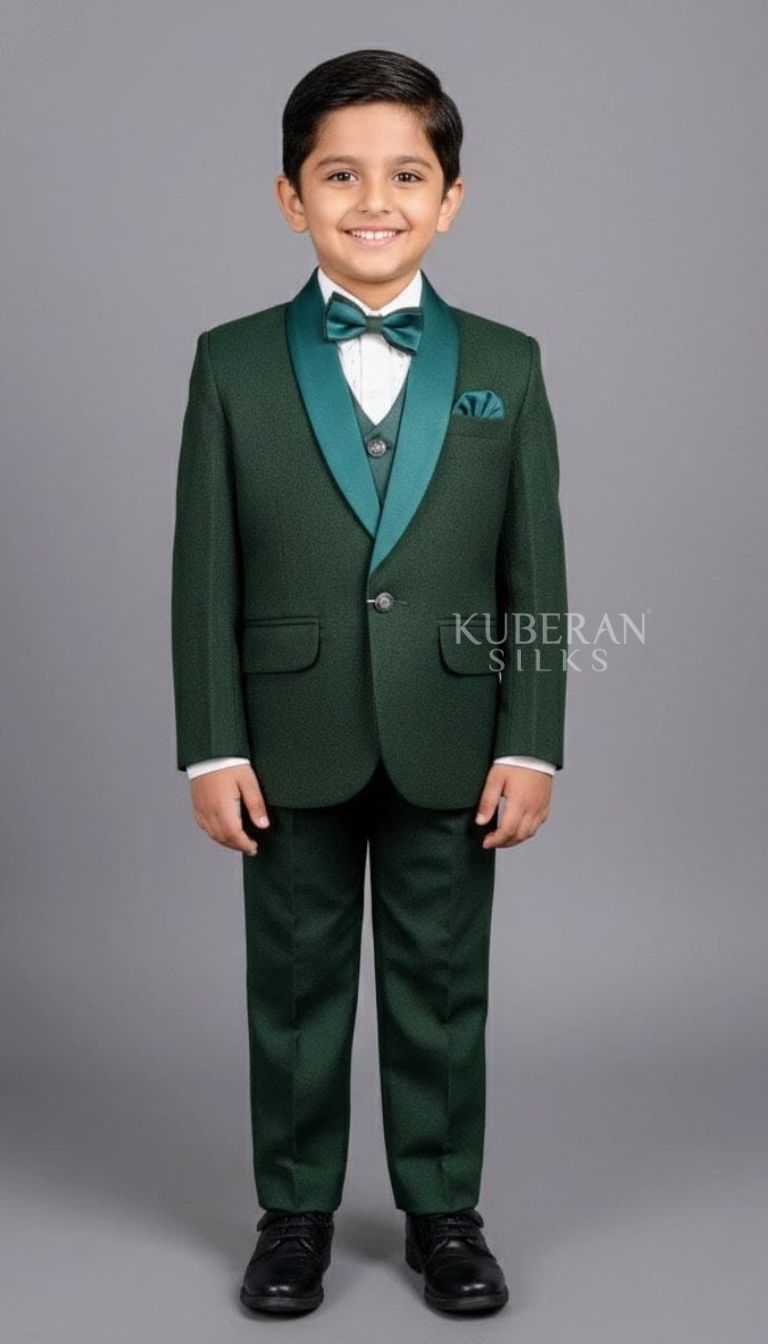 Kuberan Bottle Green With Red 9 Yards Silk Saree