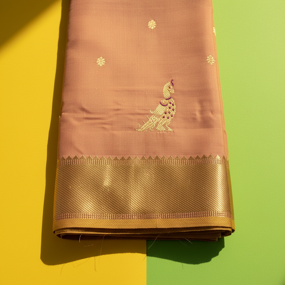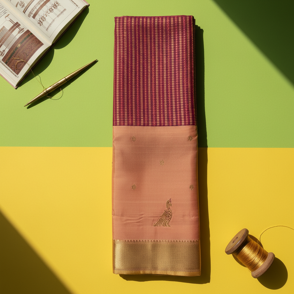 kuberan Light Maroon & Dusty Rose with Peacock Butta Kanchipuram Silk Saree