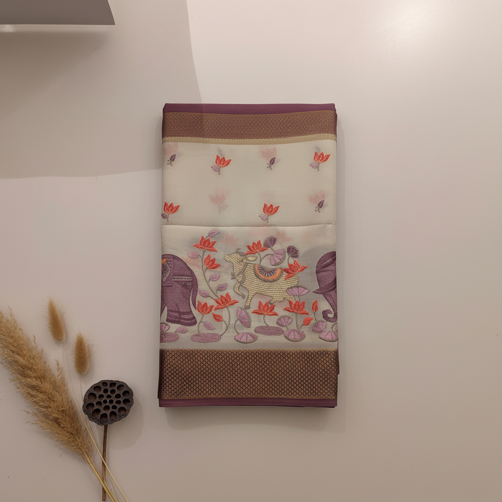 Kuberan Off White Kanchipuram Silk Saree with Black Border