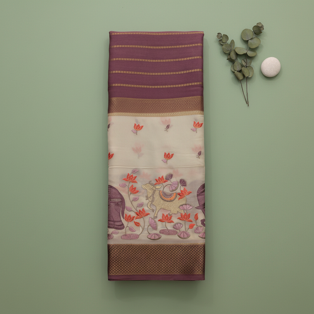 KUBERAN DUSTY PURPLE MYSORE CREPE SILK SAREE