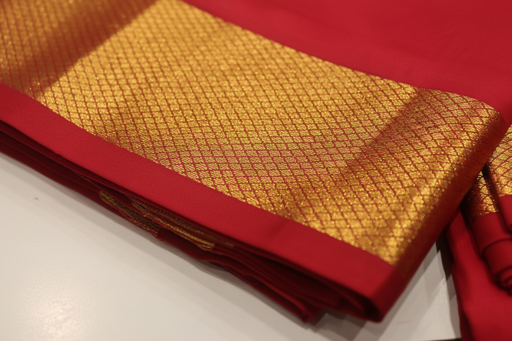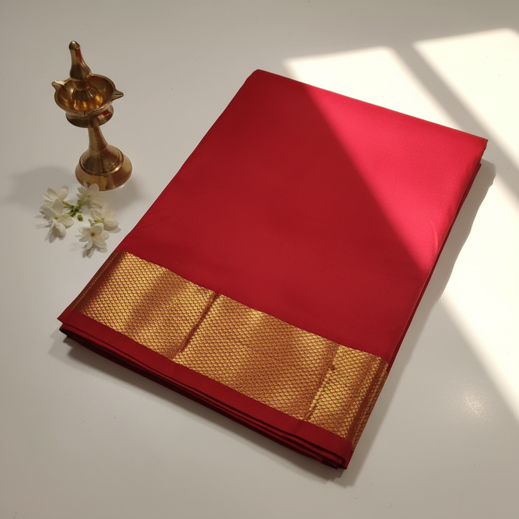 Kuberan Crimson red Zardosi Embroidered Kanchipuram Silk Saree