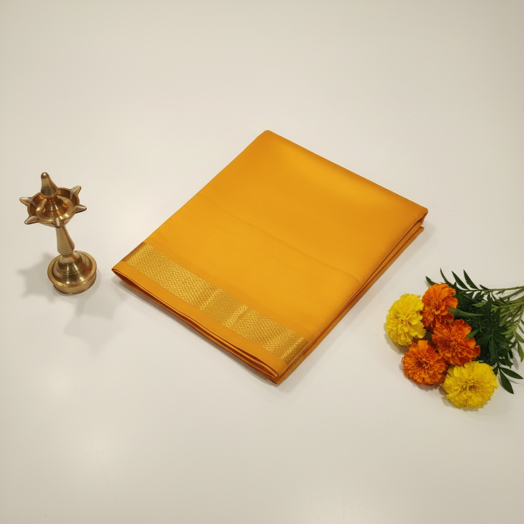 Kuberan Mango Yellow Pure Silk Dhoti.