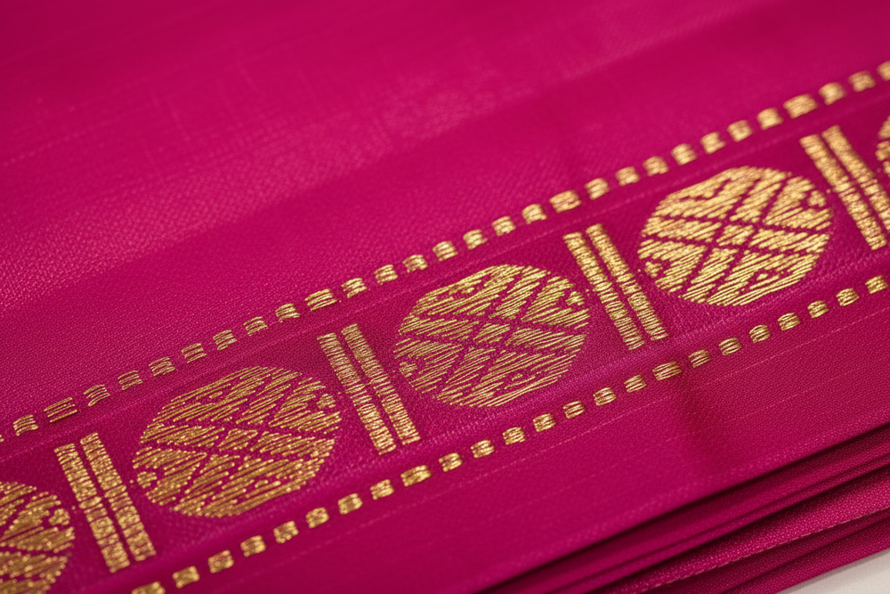 kubern Magenta Kanchipuram Silk Saree with Gold Zari Stripe