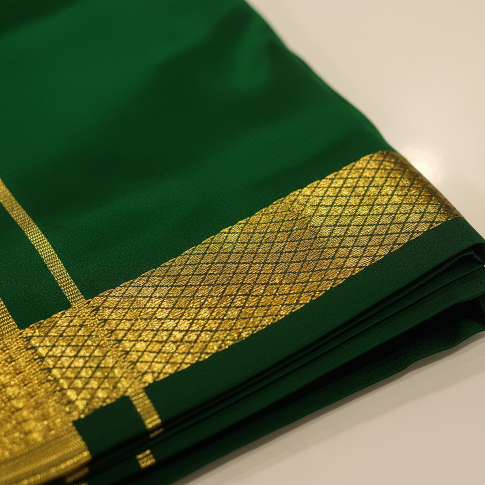 Kuberan Pear Yellow Green Pure Silk Dhoti