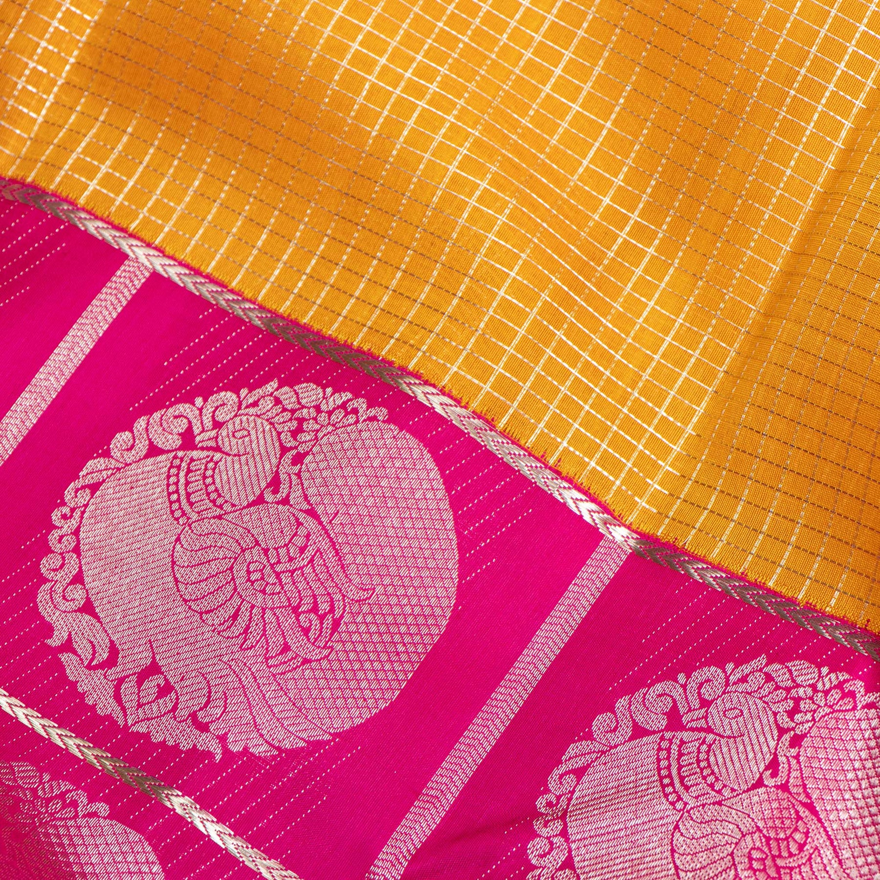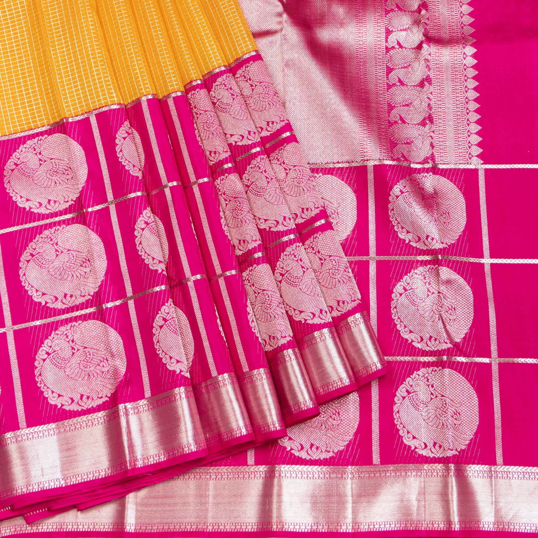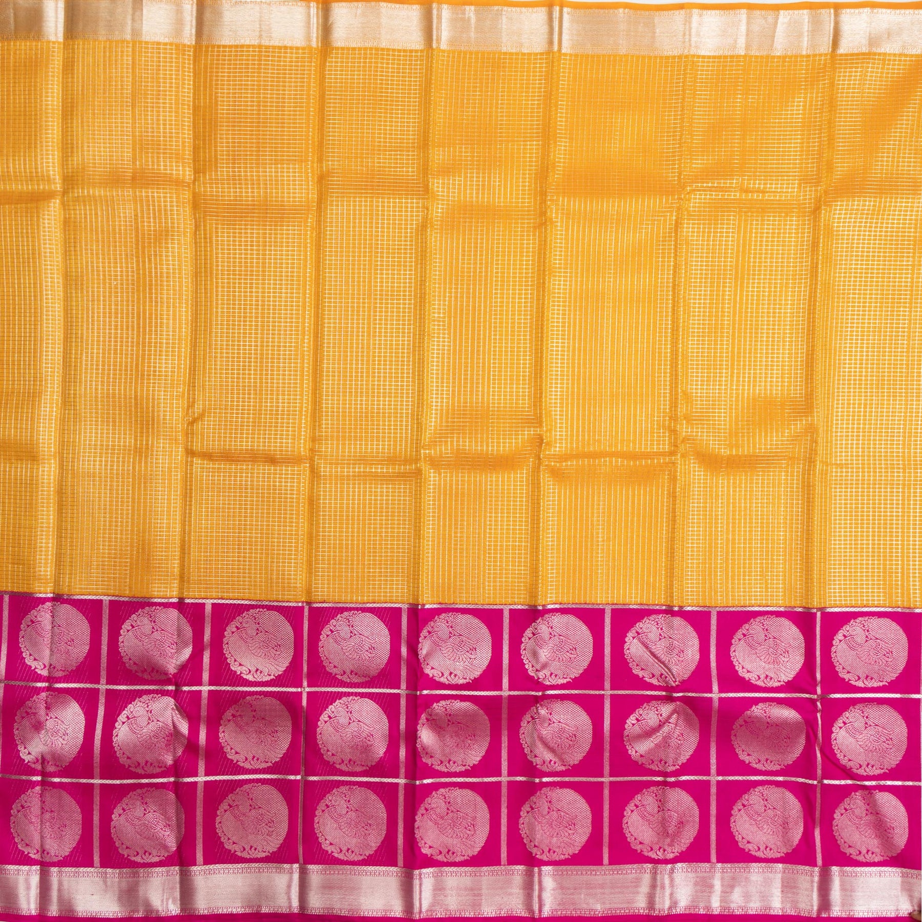 Kuberan Yellow With Pink Border Organza Kanchipuram Silk Saree