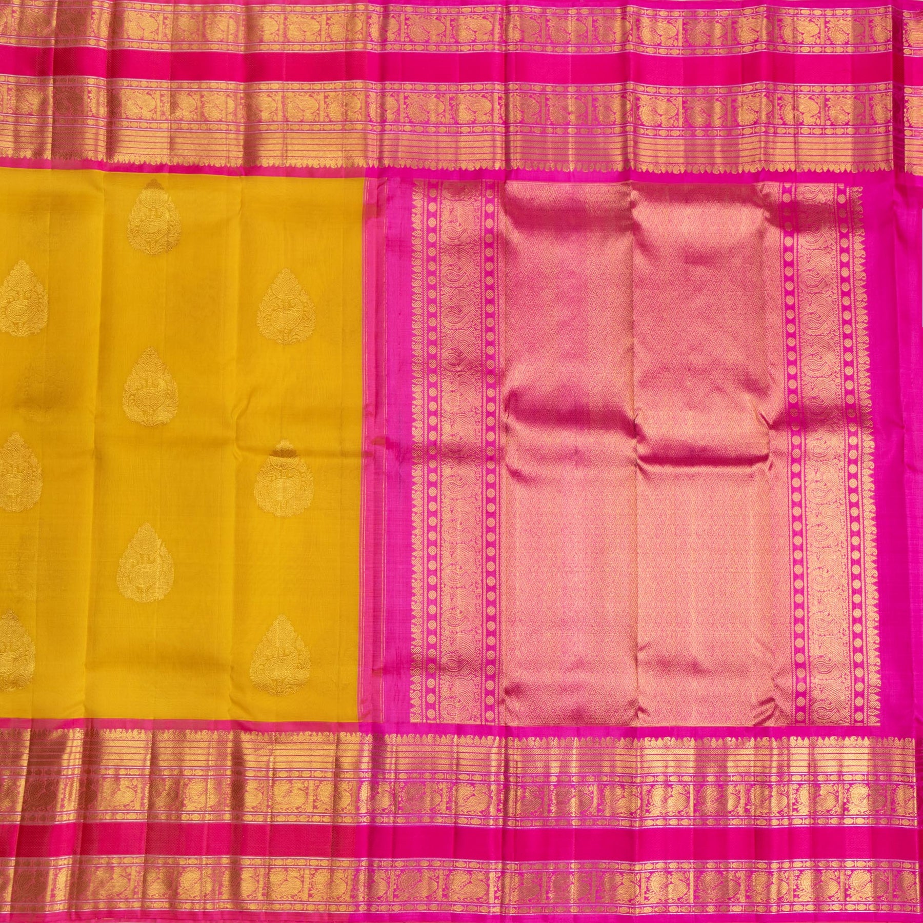 Kuberan Yellow With Pink Organza Kanchivaram Silk Saree