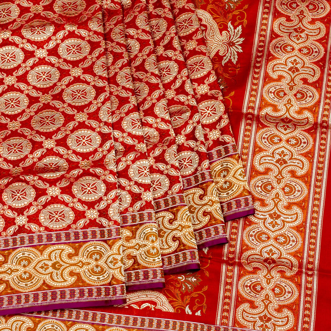 Kuberan Saffron Purple Pure Kanchivaram Silk Saree