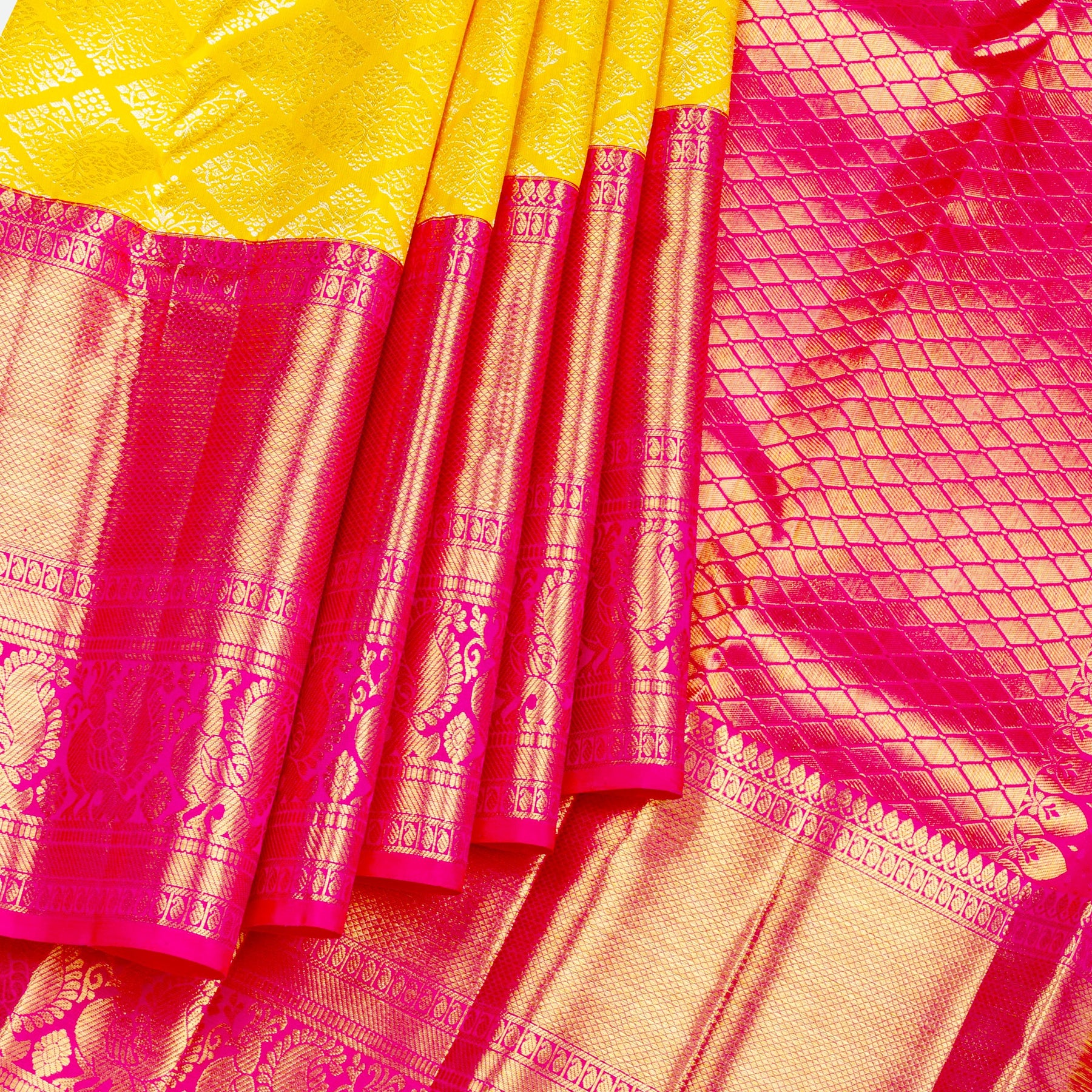 Kuberan Yellow Pink Pure Kanchivaram Silk Saree