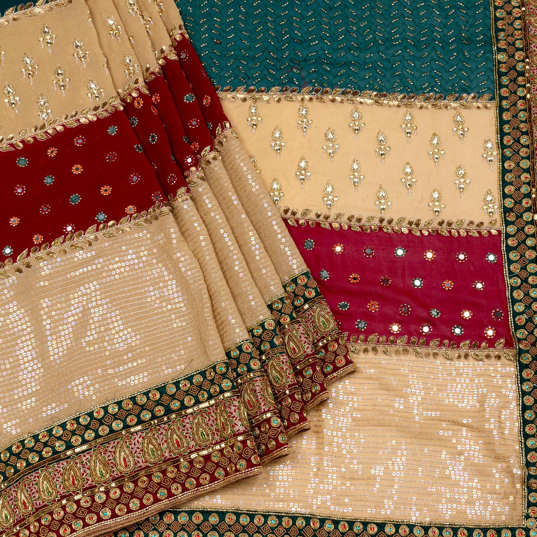 Kuberan Green Maroon Shimmer Georgette Saree