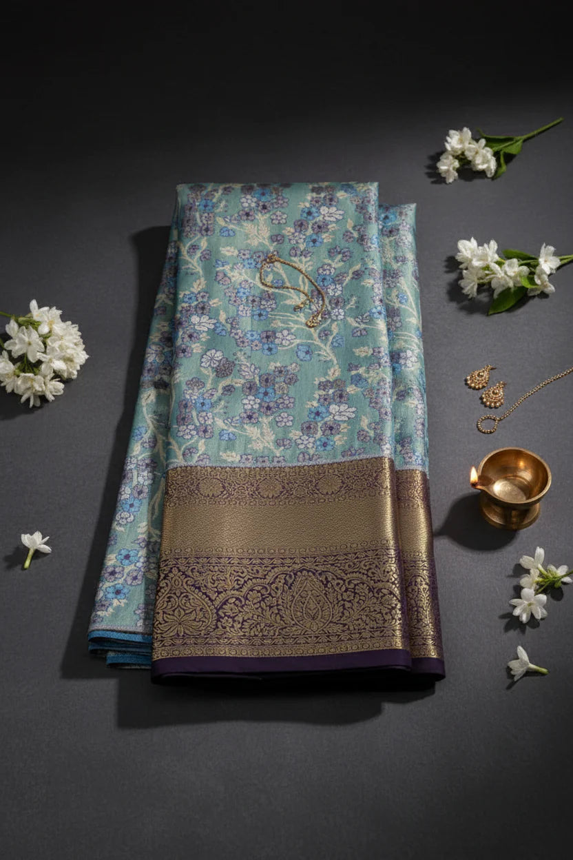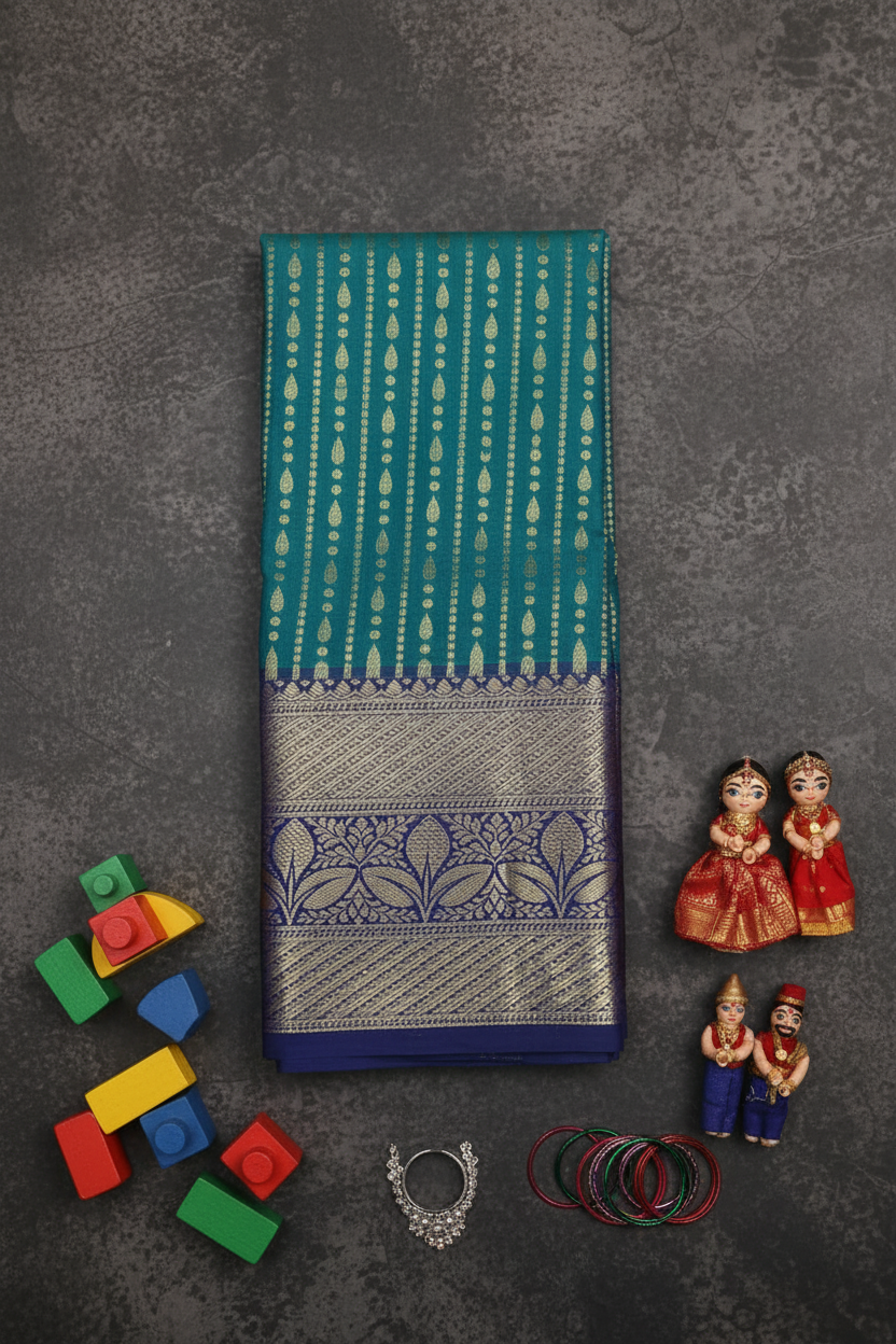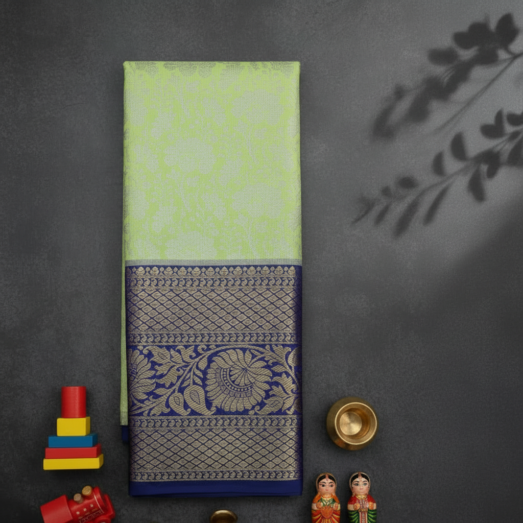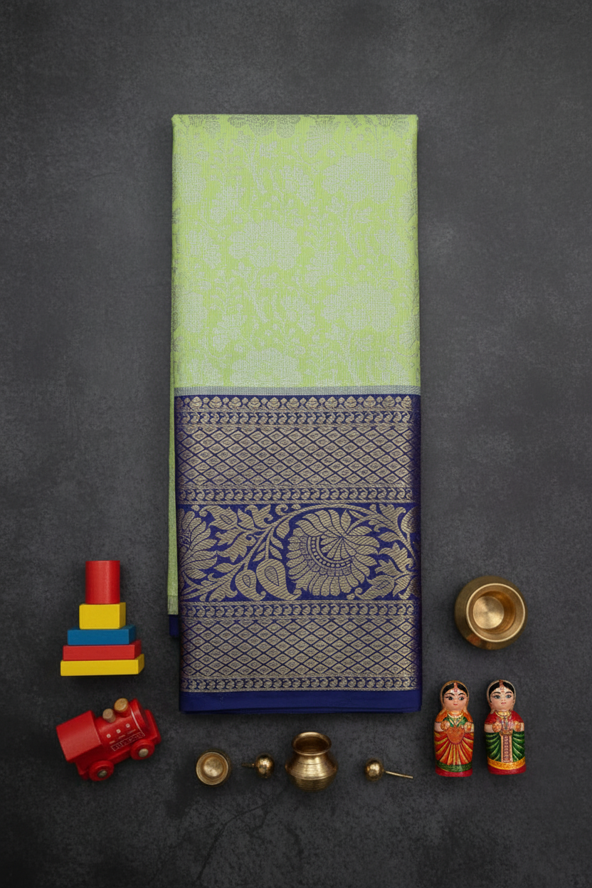 Kuberan light Green with Navy Blue Traditional Zari Border Pavada