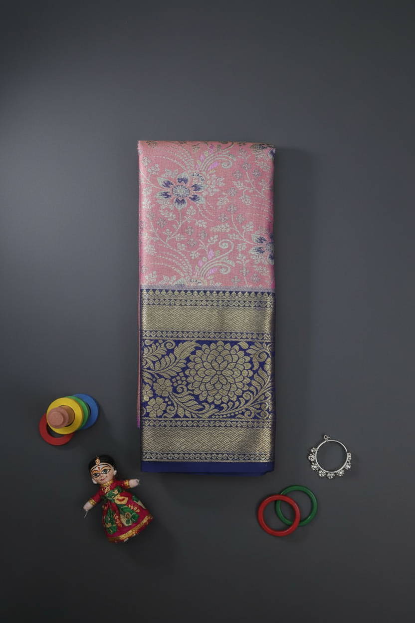 Kuberan Light Baby pink with Navy Blue Border Traditional Pavada